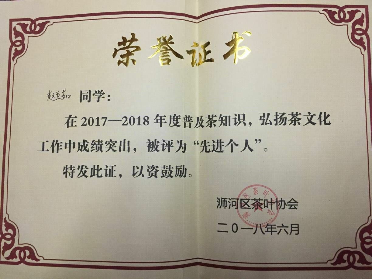 在工作中,2016年12月,被聘任为校史馆和茶学实训基地志愿者协会会员。2016年12月,在我校2016年度广播宣传工作中荣获二等奖。2017年6月,荣获信阳师范学院广播宣传先进个人一等奖。2017年7月,在2016-2017年度普及茶知识,弘扬茶文化工作中被评为“先进个人”。在2017年11月,在信阳师范学院新生广播操中,授予“优秀组织者”称号。2018年3月,在我校2017年度新闻宣传工作中,被评为对内新闻宣传三等奖。2018年6月,荣获信阳师范学院2017-2018学年广播宣传先进个人一等奖。在2018年6月,2017-2018年度普及茶知识,弘扬茶文化工作中,被评为“先进个人”。2018年8月,被聘任为浉河区茶叶协会志愿者。2018年8月,被聘任为信阳师范学院校史馆志愿者协会会长。
