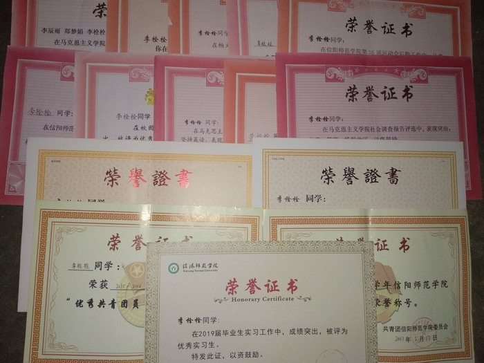 在学习方面,该生努力夯实专业课基础,态度诚恳踏实,严谨认真,学习成绩良好,先后通过了全国计算机二级MS Office应用考试,英语四级考试,并获得普通话二级甲等成绩,两次获得校级三等奖学金。2017年11月在学院暑期社会调查报告中获得一等奖。2018年积极参加学院顶岗实习,在信阳光山县张寨小学担任六年级语文,英语教师为期两个月,期间积极认真学习实践,丰富自身教师理论和技能,2019年5月获得信阳师范学院“优秀实习生”。现已被电子科技大学马克思主义中国化专业拟录取为硕士研究生。