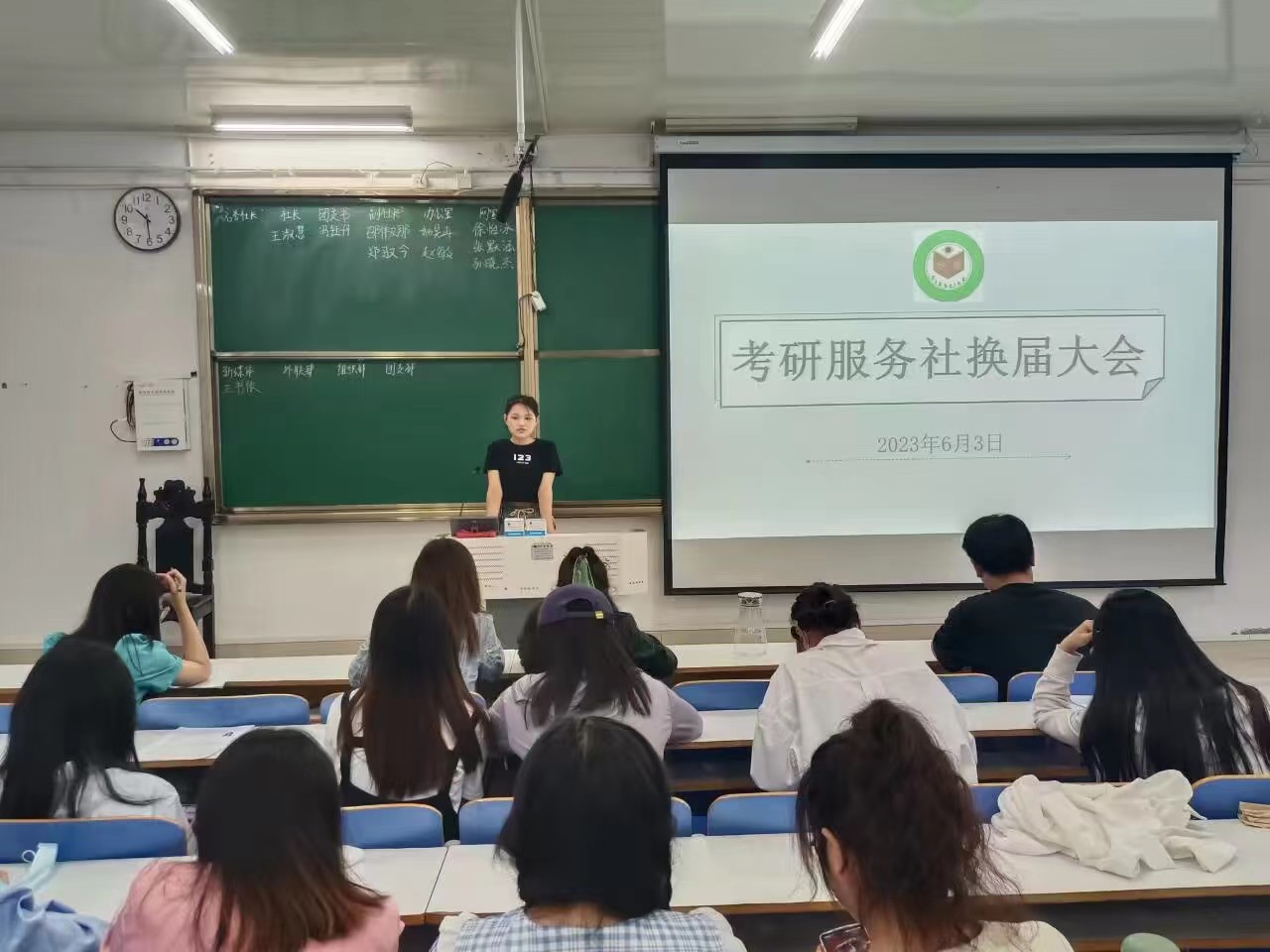 此次考研服务社换届大会的召开,不仅为考研服务社注入新的活力,调动了同学们的工作热情,而且充分展示了考研服务社新一届干事成员良好的精神风貌与认真负责的工作态度,为社团今后工作的顺利开展打下了坚实的基础。(小说狂人 冯娇娇/供稿 陶青青/审核)