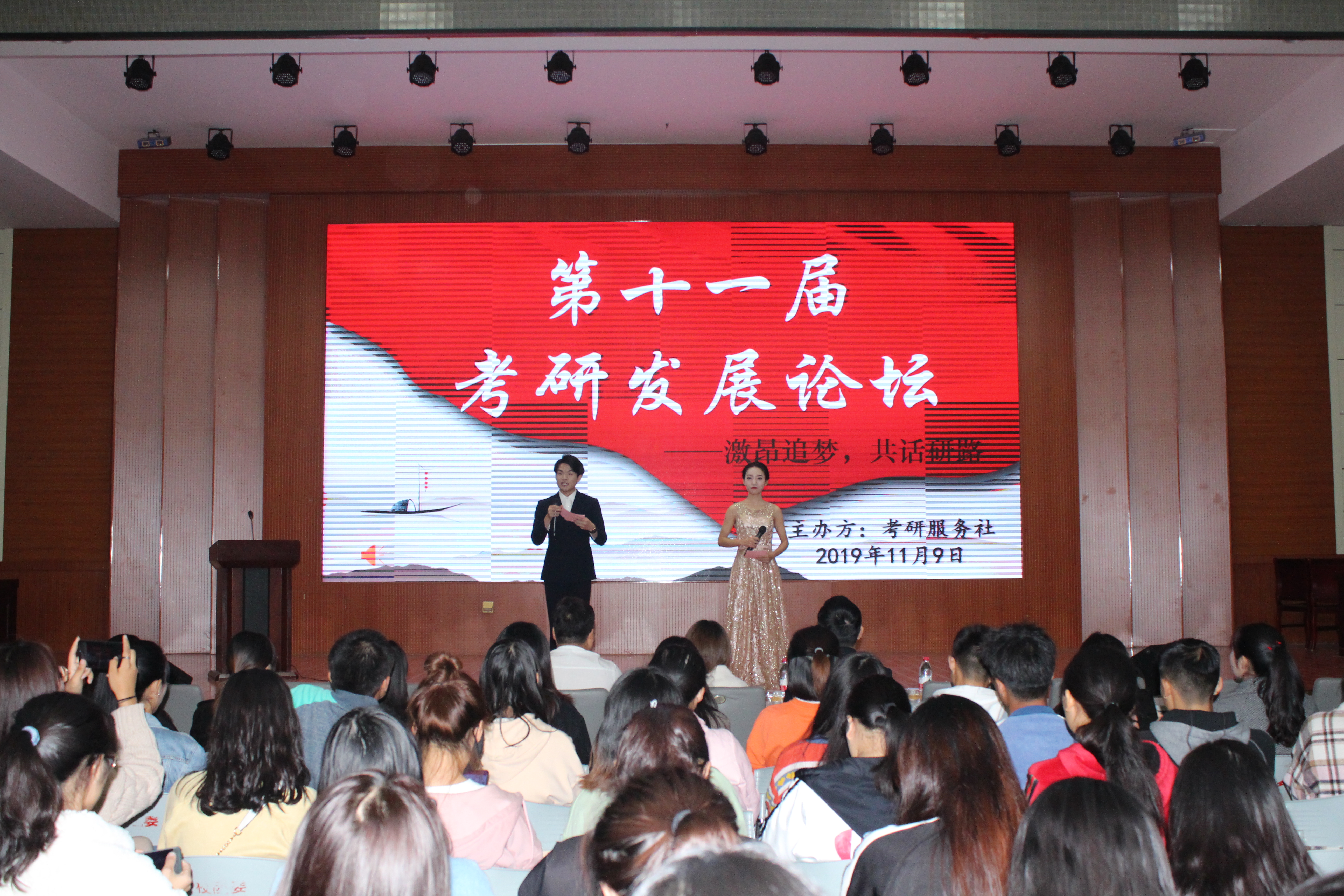 论坛以歌曲《你曾是少年》拉开序幕,积极地展现了考研人的乐观心态。曹栋剖析了当下严峻的就业形势,阐述了考研的重要性。他建议同学们积极考研,提高自我竞争力,追求美好未来。接着,张伟围绕为什么考研、考研高校的选择原则、考研的定位等作了题为“立志考研”的报告。他重点介绍了适合同学们报考的四十所考研高校以及注意事项。罗璇结合自身经历向学子们详细介绍了跨专业考研的学习方法,并建议同学们坚定考研目标,制定合理计划,保持良好心态,平心静气,一往无前。随后,考研服务社播放了记录考研人在拼搏路上挥洒汗水的VCR,激励每一个怀有考研梦想的学子坚定考研梦想。最后,优秀考研学生代表冯李楠、张莹莹、权志熊、李艳分别结合各自考研经验,从学习方法、时间把握、学校选择、参考书籍、考研心态等方面分享了个人建议。他们踏实肯干的学习态度,使同学们深受鼓舞。活动期间穿插游戏和抽奖互动环节,一次次将论坛气氛推向高潮。