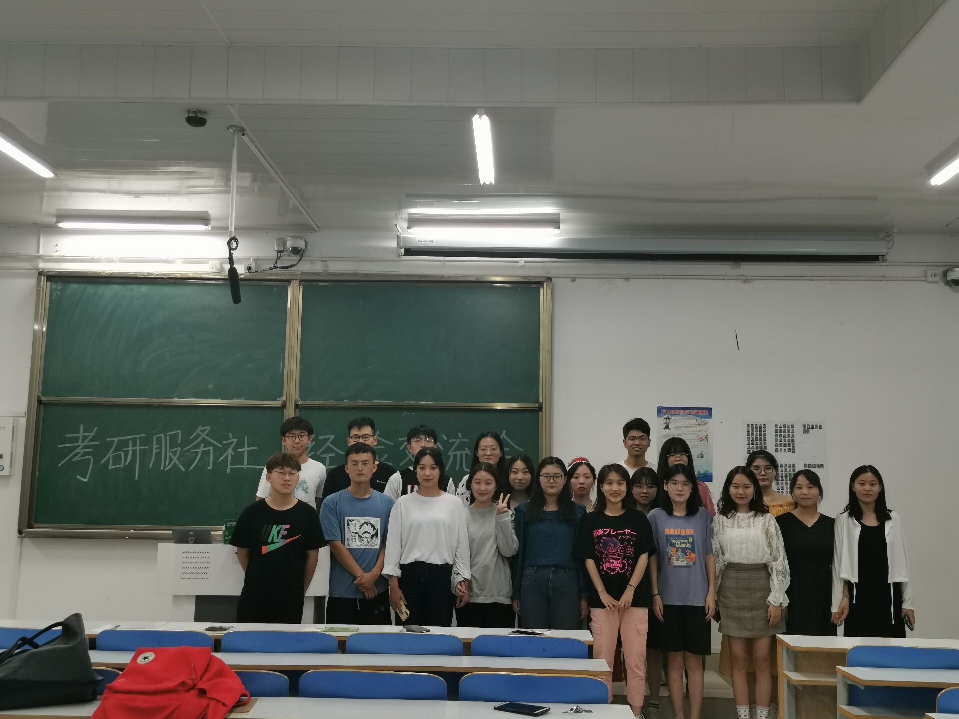 首先,由新一届社长雷诗雨对会议做了部署,接着,由上一届社长牛笑怡指出当前社团存在的问题,就社团新生宣传问题展开讨论。详细的介绍了社团的发展方向,鼓励新一届的社团负责人勇于创新,为社团注入鲜活的力量。然后,根据各个部门自身的情况,各部门负责人进行分开交流。最后,全体考研服务社成员进行合照,共祝考研服务社越办越好。