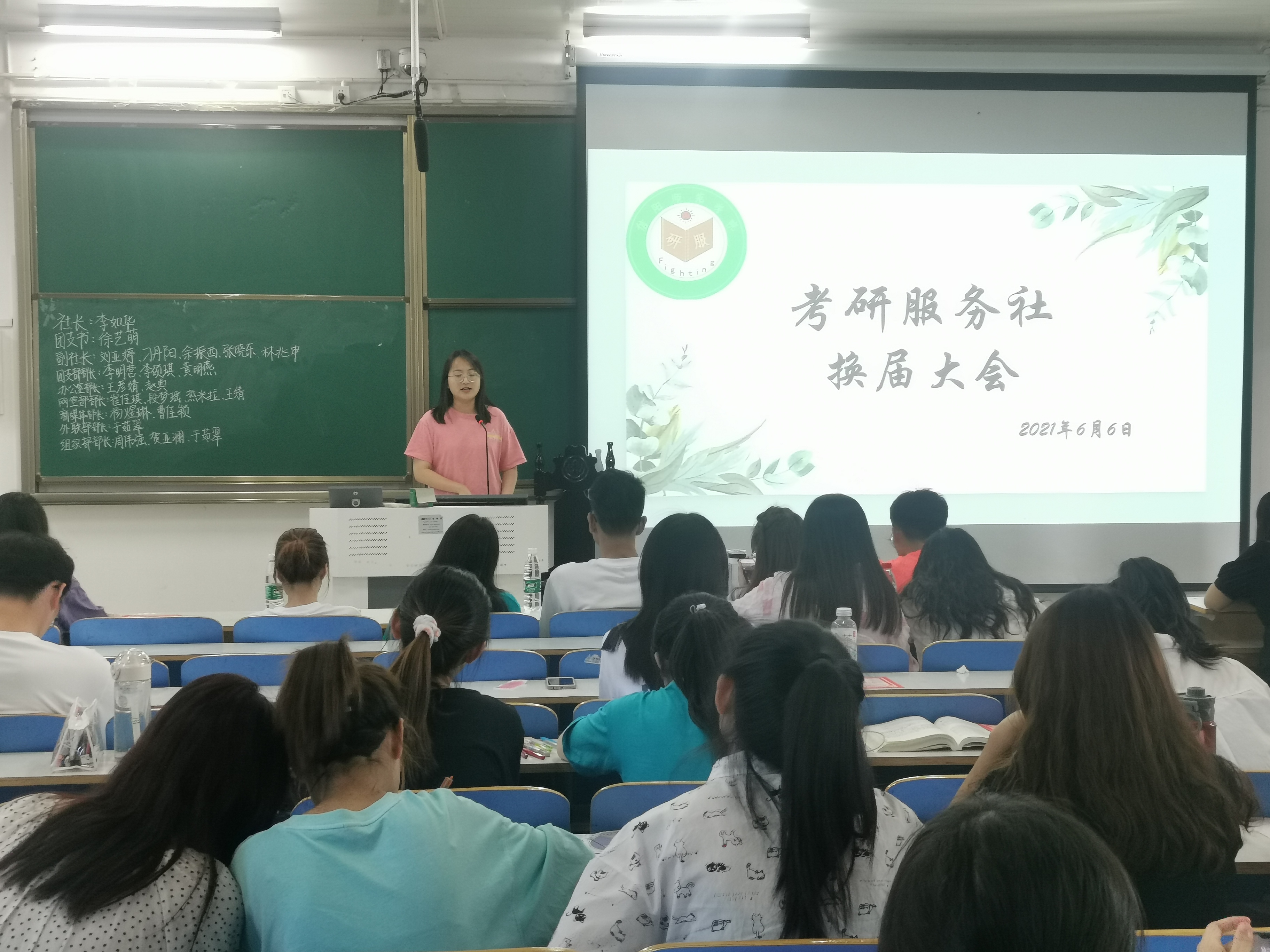 2021年6月6日下午4点,考研服务社于信阳师范学院社会科学楼514举行了第十三届考研服务社换届竞选大会,根据竞选人综合素质能力展示情况、日常考勤情况、活动参与情况、考研服务社会员及负责人投票情况为考察项,采用“部长确定,社长团支书副社长暂定”责任制,经信阳师范学院小说狂人 分团委、考研服务社理事会共同审核决定,选举出第十三届考研服务社干部成员共16人。