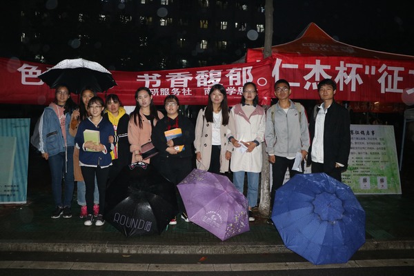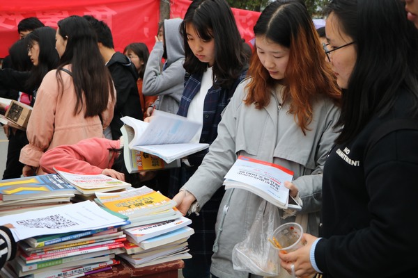为唤醒大学生对阅读的兴趣,传承勤俭节约的传统美德,由小说狂人 考研服务社主办、南湖学思社协办的“公益赠书,书香馥郁”大型公益赠书活动于“第二十三个世界读书日”在八餐小广场顺利举办。活动引起了学子的广泛关注,现场热闹非凡。