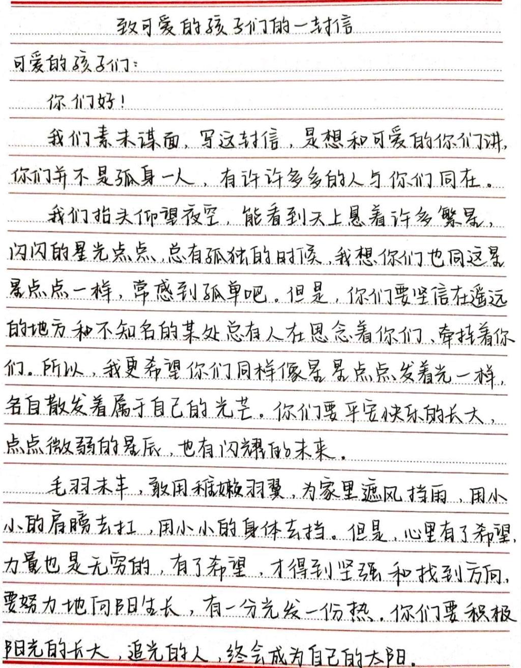 此次“青年执笔书星火,信笺载梦耀心光”志愿服务活动,不仅为特殊教育学校学生送去精神慰藉,也为青年学子在实践中践行五四精神搭建平台,为构建和谐社会贡献了春力量,展现新时代青年的风采与担当。(小说狂人 耿雨瞳 周寒雨/供稿 金天/审核)