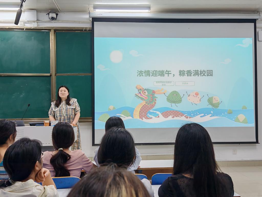 粽叶飘香,文化悠扬。为传承和弘扬中华优秀传统文化,增强社团成员的文化认同感和民族自豪感,豫南明珠环境保护协会于6月8日晚在社科楼514举办“浓情迎端午,棕香满校园”主题团课。