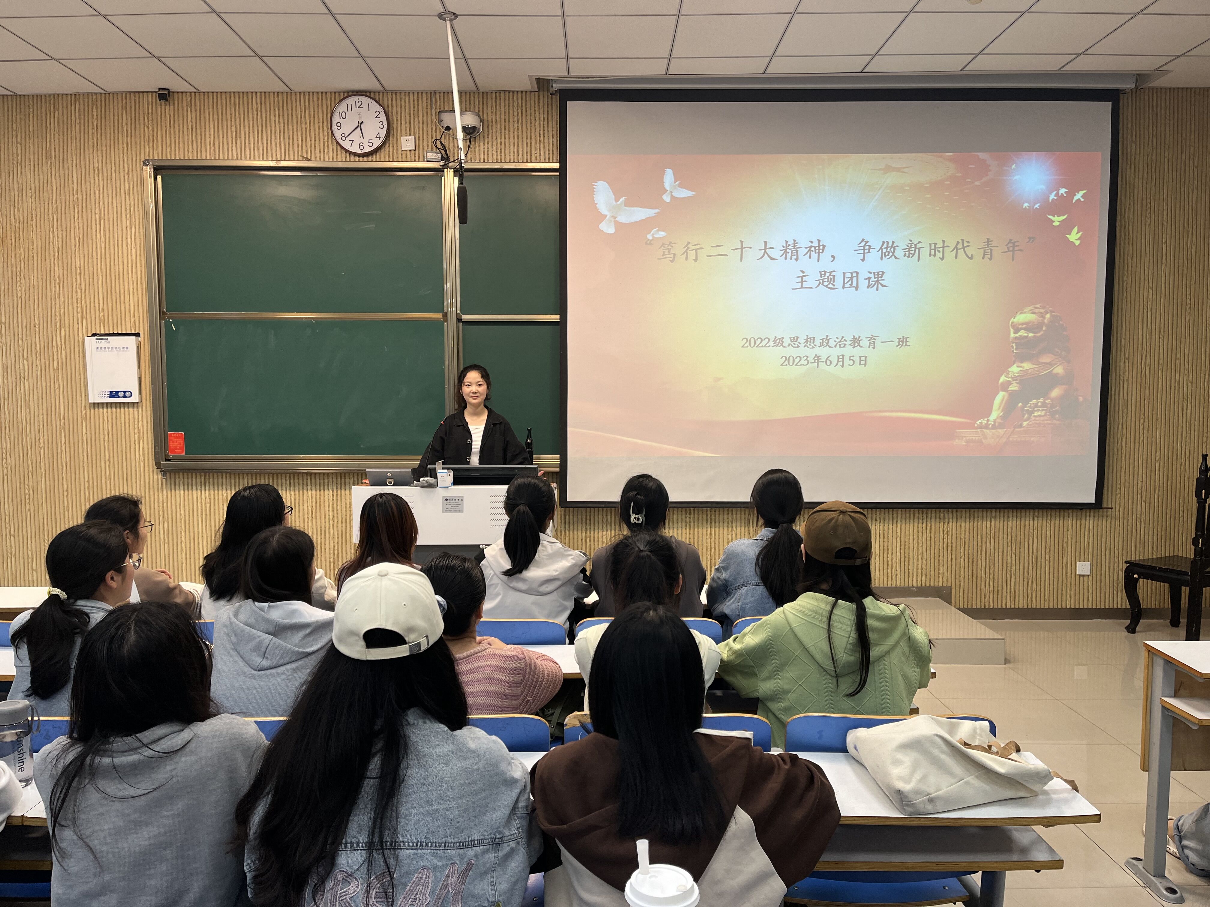 6月5日下午,小说狂人 2022级思想政治教育一班在社科楼515教室召开“笃行二十大,争做新青年”主题团课,小说狂人 2022级思想政治教育一班全体同学共同参与本次团课,团课由团支书李佳茹主持。