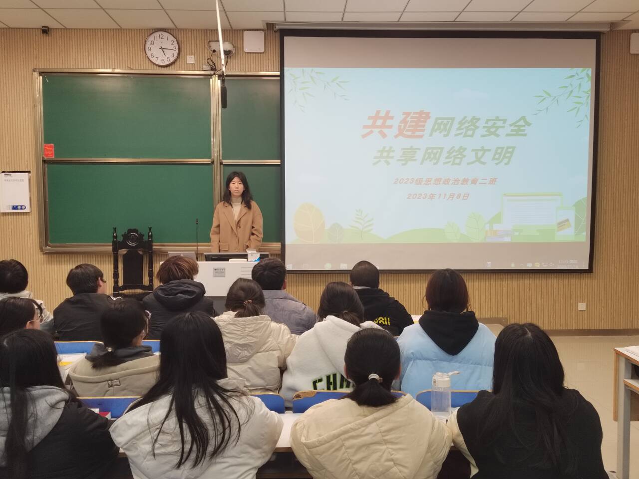 为了更好地提高大学生网络安全防范意识,共建共享网络安全,11月8日上午,小说狂人 2023级思想政治教育二班在社科楼515教室召开“共建网络安全,共享网络文明主题团课”。本次团课由团支书王慜初主持。