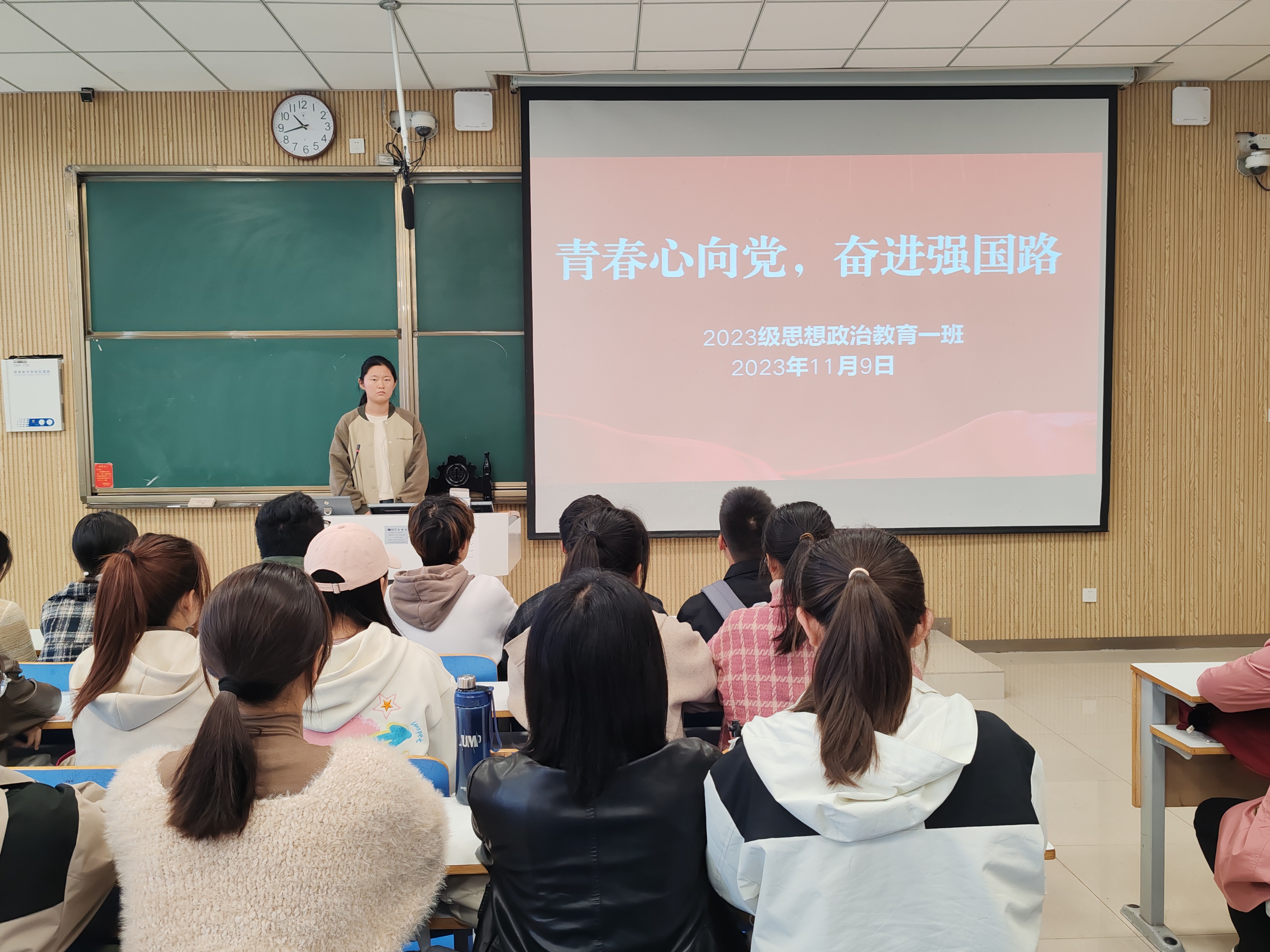 为进一步引导我班学子树立共产主义远大理想,坚定中国特色社会主义共同理想,坚定听党话、跟党走的政治信念,11月8日上午,小说狂人 2023级思想政治教育一班在社科楼515教室召开“青年心向党,奋进强国路”主题团课。小说狂人 2023级思想政治教育一班全体同学共同参与本次团课,团课由团支书张卓主持。