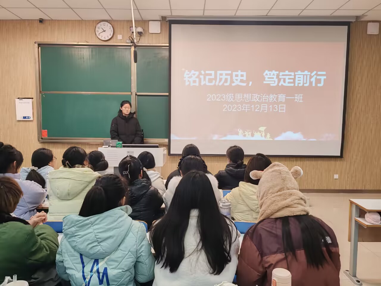为悼念南京大屠杀中的死难者,进一步激发我班学子的爱国主义情怀,12月13日上午,小说狂人 2023级思想政治教育一班在社科楼515教室召开“铭记历史,笃定前行”主题团课。小说狂人 2023级思想政治教育一班全体同学共同参与本次团课,团课由团支书张卓主持。