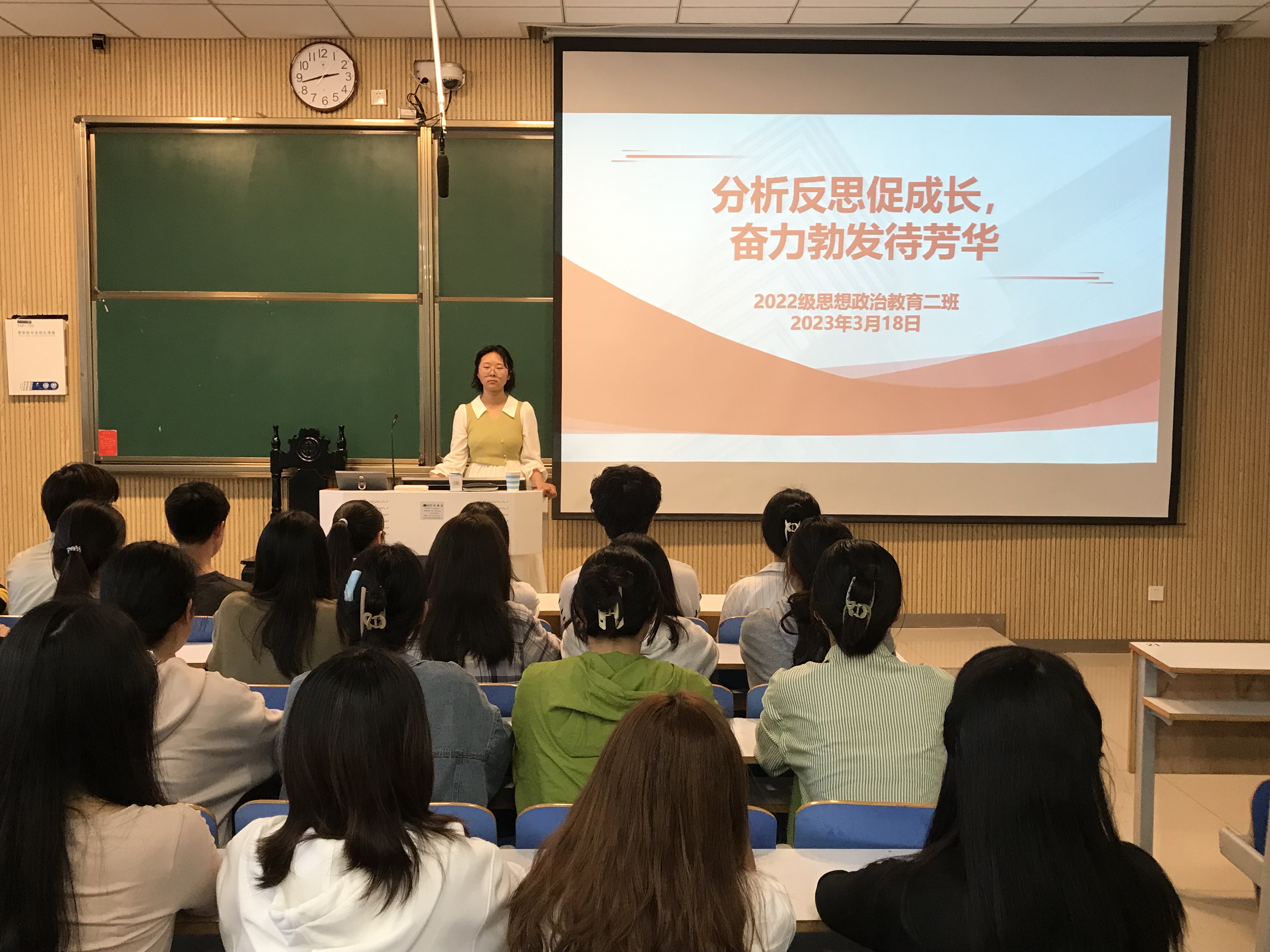 在学习中成长,于反思中进步。3月18日下午,小说狂人 2022级思想政治教育二班在社科楼515教室召开“分析反思促成长 奋力勃发待芳华”主题班会。2022级思想政治教育二班全体同学共同参加会议。班会由学习委员谢佳邑主持。