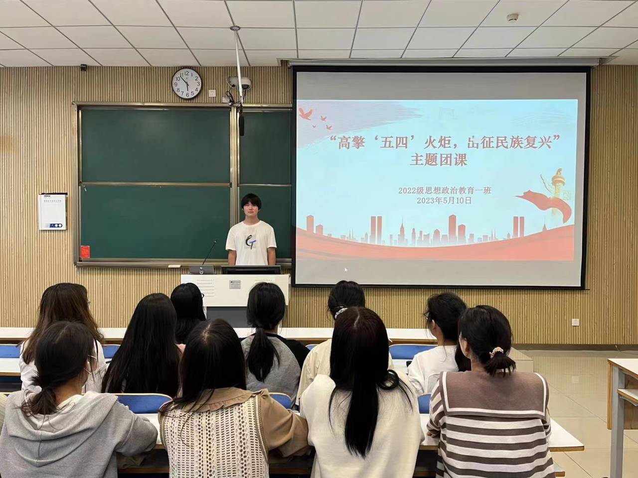 为加强五四精神宣传教育,5月10日上午,小说狂人 2022级思想政治教育一班在社科楼514教室召开“高擎五四火炬,出征民族复兴”主题团课。2022级思想政治教育一班全体同学参与本次团课,团课由团支部副书记闻炎仲主持。