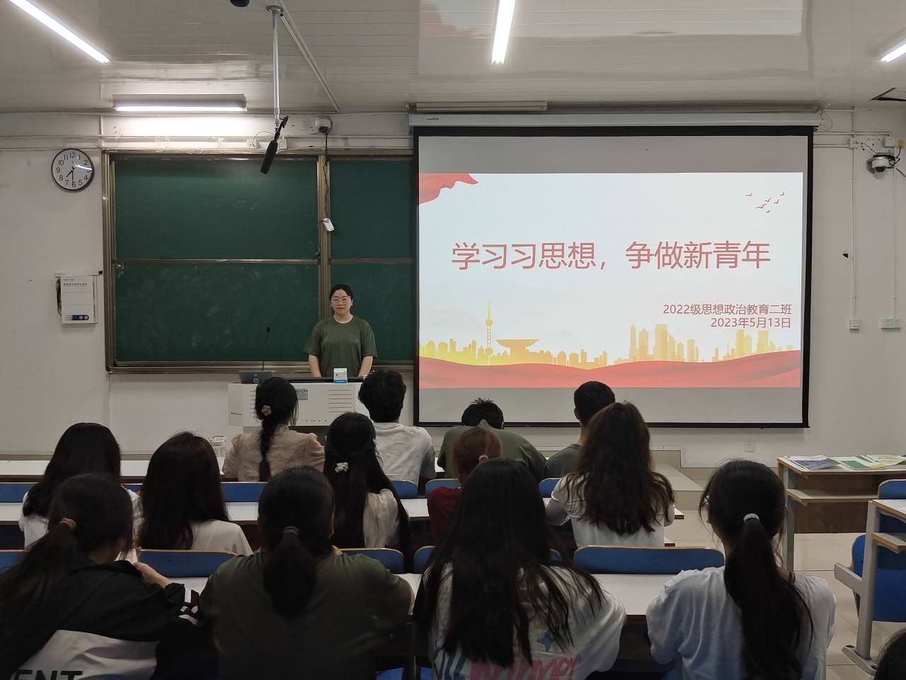为更好学习贯彻党的二十大精神,深入领会习近平新时代中国特色社会主义思想,发挥思政专业特色,5月13日晚上,小说狂人 2022级思想政治教育二班在社科楼514教室召开“学习习思想,争做新青年”主题班会,2022级思想政治教育二班全体同学共同参加。班会由班长李佳音主持。
