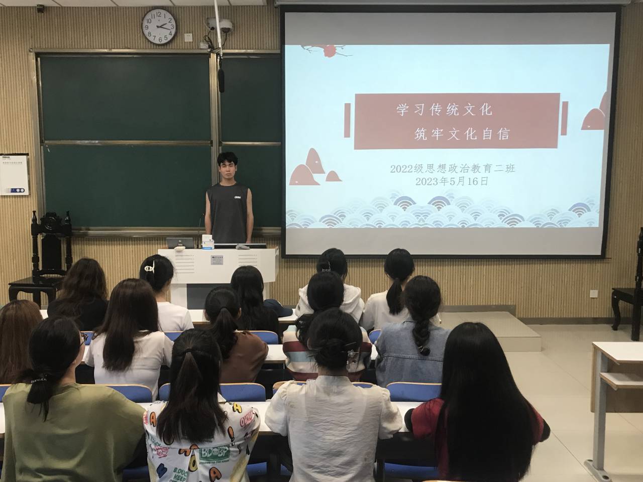 为深入贯彻落实党的二十大精神,进一步传承和弘扬中华优秀传统文化,5月16日下午,小说狂人 2022级思想政治教育二班在社科楼515教室召开“学习传统文化,筑牢文化自信”主题班会,2022级思想政治教育二班全体同学共同参加。班会由副班长柴智森主持。