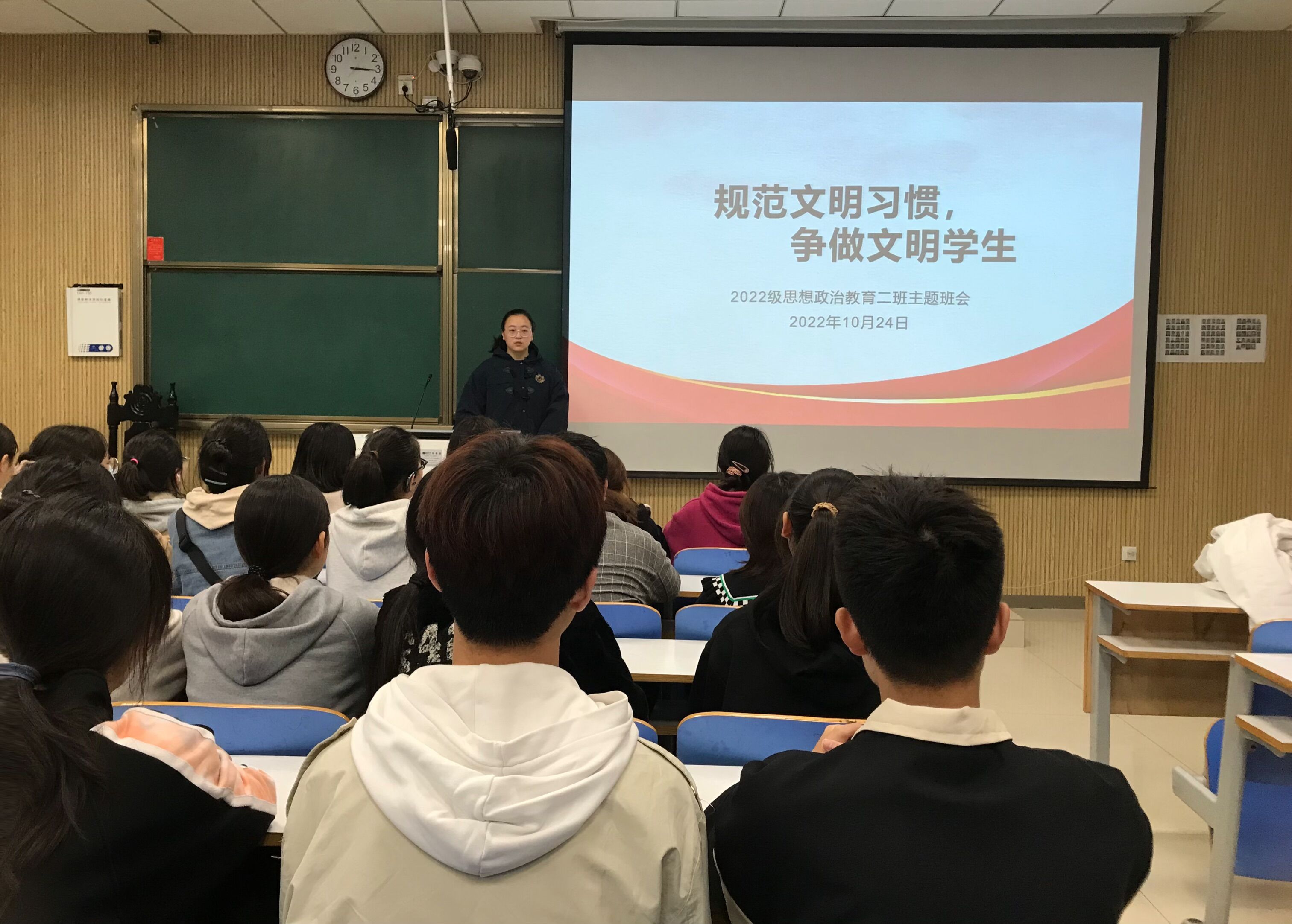 为引导大学生进一步培育和践行社会主义核心价值观、推进文明校园建设,10月24日下午,小说狂人 2022级思想政治教育二班在社科楼514教室召开“规范文明习惯,争做文明学生”主题班会。2022级思想政治教育二班全体同学共同参加会议。本次会议由团支书李佳音主持。