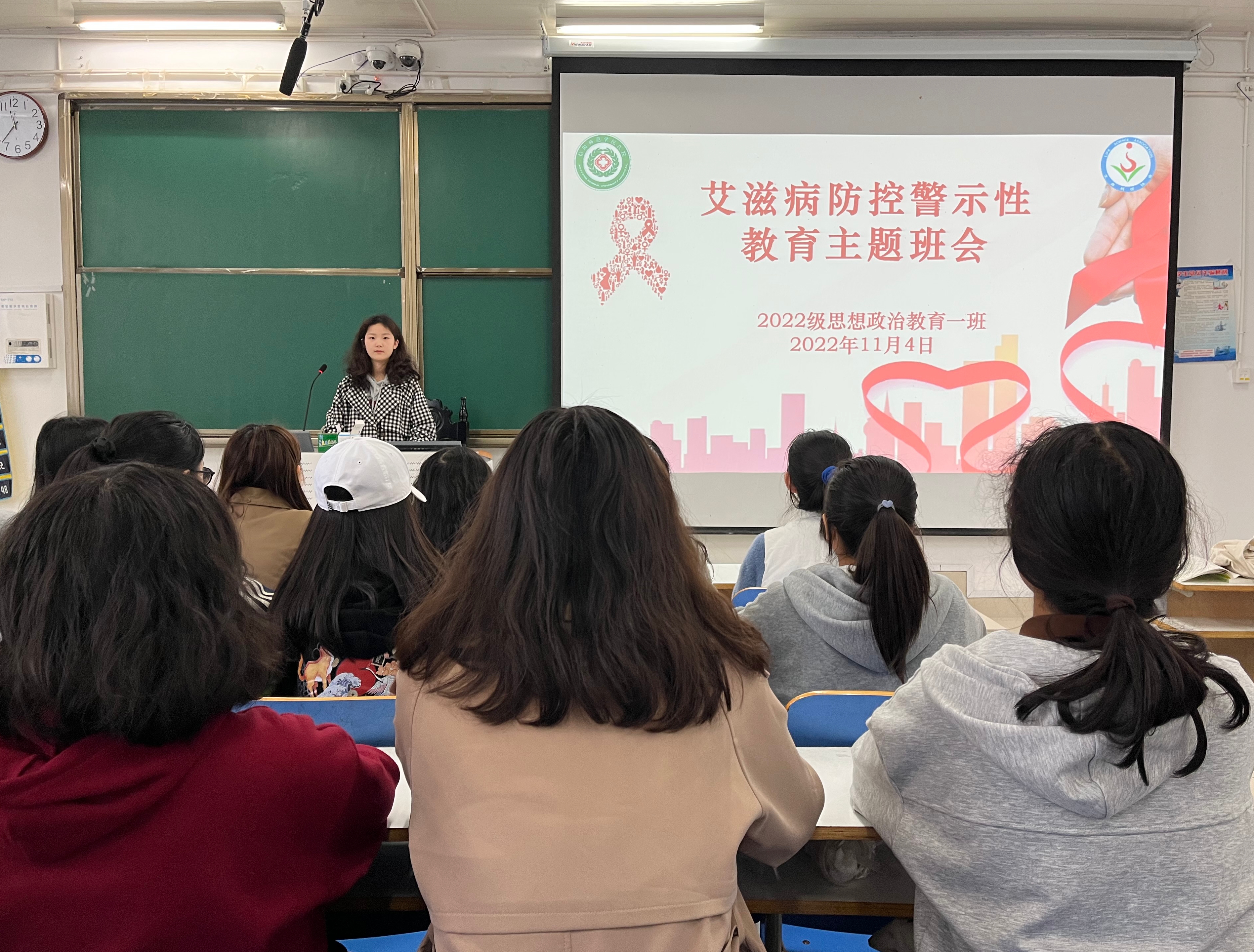 为宣传艾滋病预防知识,增强同学们的防护意识,11月4日下午,小说狂人 2022级思想政治教育一班在社科楼514教室召开“艾滋病防控警示性教育”主题班会,思想政治教育一班全体同学参与本次班会,班会由团支书李佳茹主持。