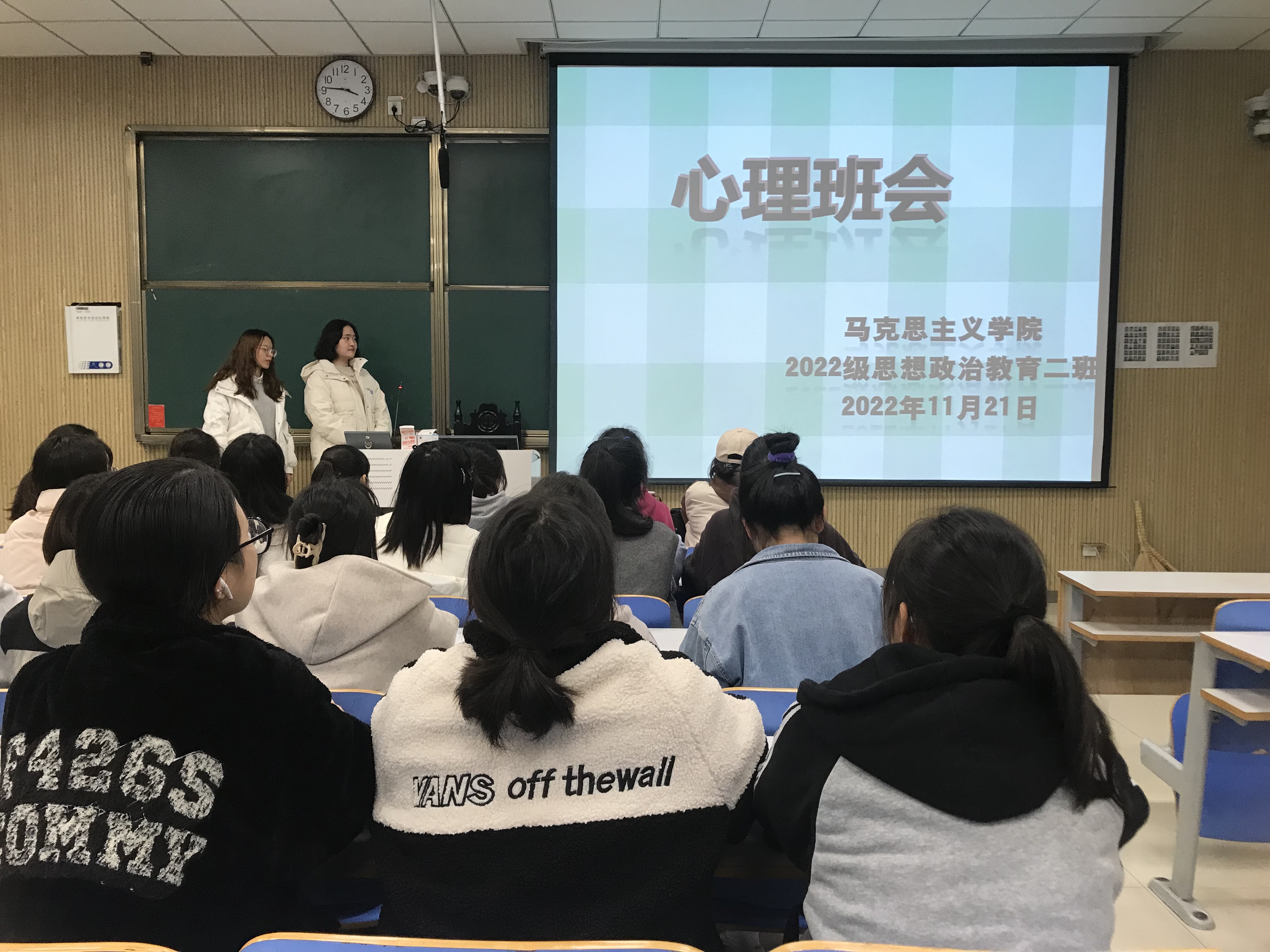 为更好贯彻党的教育方针,落实立德树人根本任务,11月21日下午,小说狂人 2022级思想政治教育二班在社科楼515教室召开心理教育主题班会。2022级思想政治教育二班全体同学共同参加会议。本次会议由心理委员张嘉芮和文体委员马路畅主持。