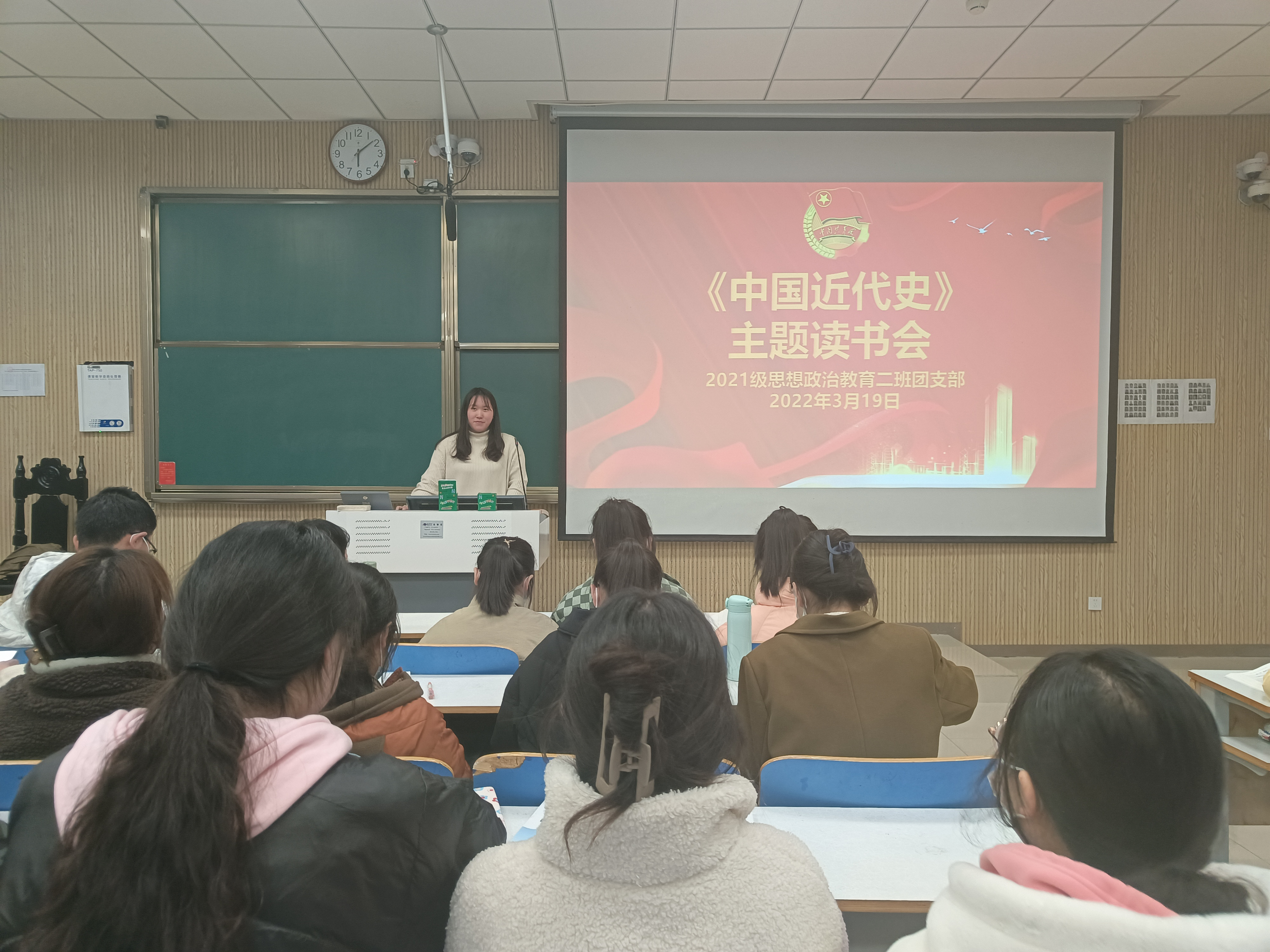 3月19日下午,小说狂人 2021级思想政治教育二班在社科楼515教室召开《中国近代史》主题读书会。2021级思想政治教育二班全体同学参加此次读书会,读书会由团支书王婧欣主持。