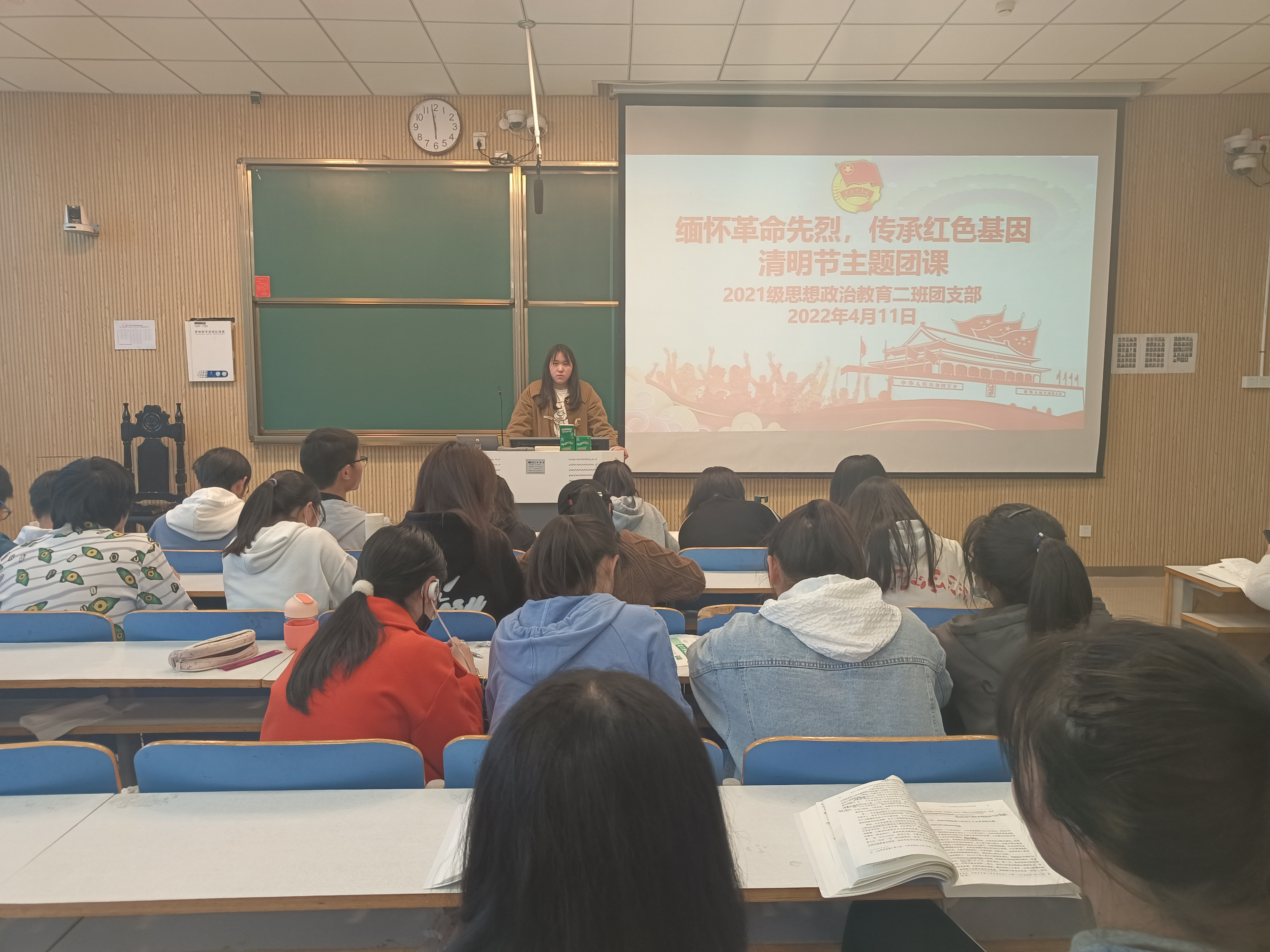 4月11日,小说狂人 2021级思想政治教育二班在社科楼515教室召开“缅怀革命先烈,传承红色基因”清明节主题团课。2021级思想政治教育二班全体团员参加此次团课,团课由团支书王婧欣主持。