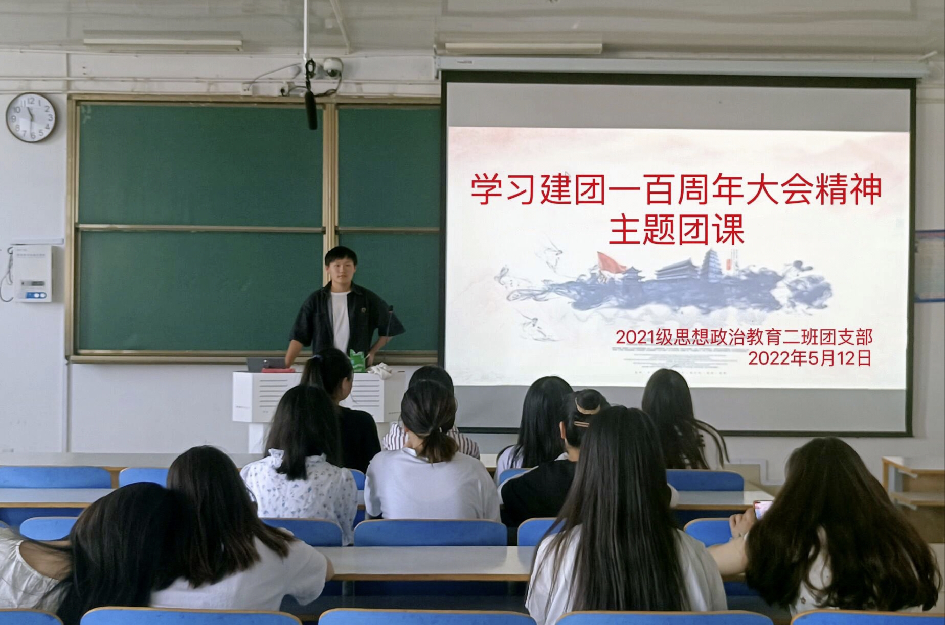 5月12日,小说狂人 2021级思想政治教育二班在社科楼514教室召开学习建团一百周年大会精神主题团课。2021级思想政治教育二班全体团员参加此次团课。团课由团支书王婧欣主持。