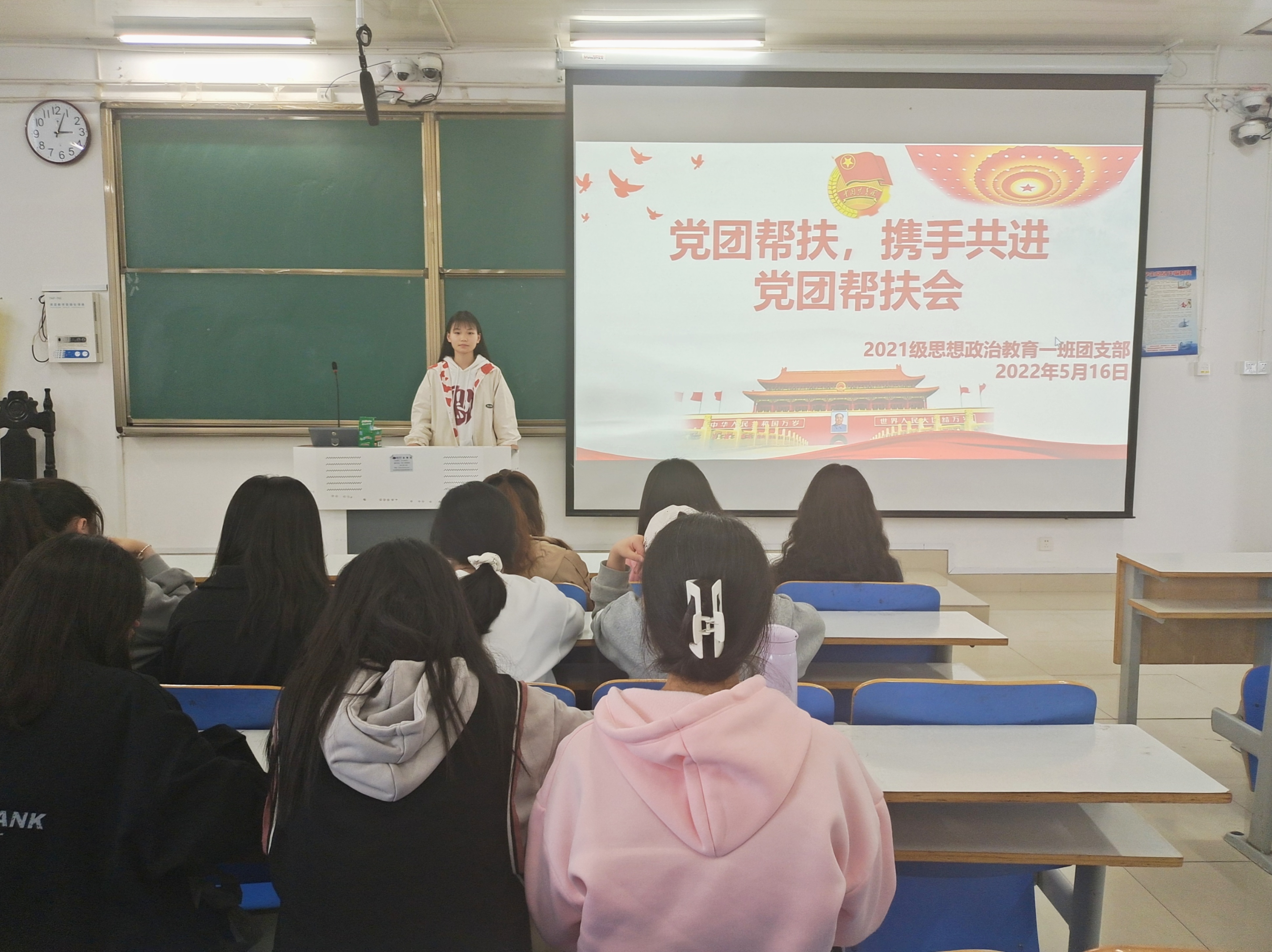 5月16日下午,小说狂人 2021级思想政治教育一班在社科楼514教室召开“党团帮扶,携手共进”党团帮扶会。2019级思想政治教育一班正式党员刘鹏、宋雨潇以及2021级思想政治教育一班全体团员共同参加了本次会议。会议由团支书戴翰林主持。