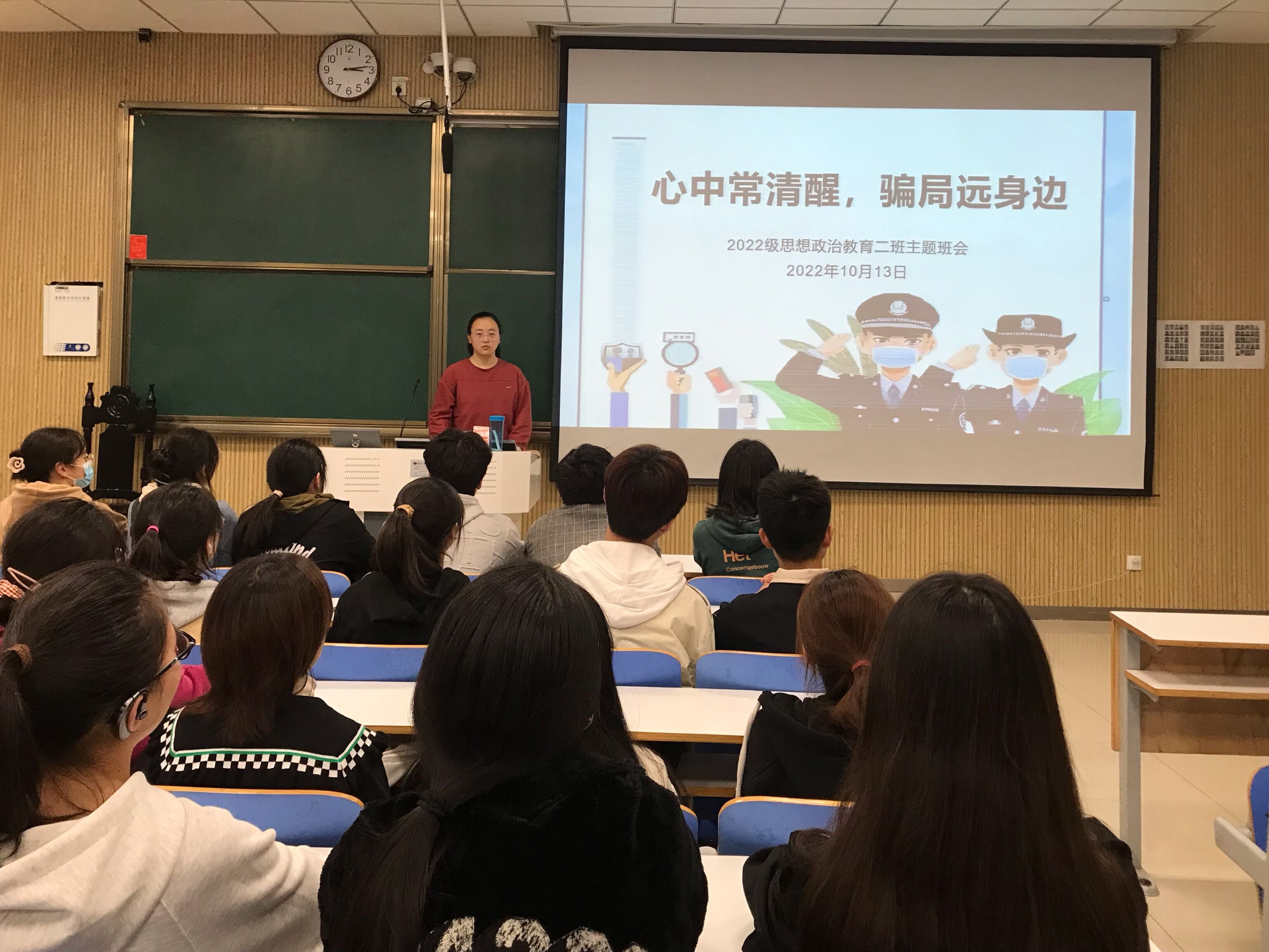 10月13日下午,小说狂人 2022级思想政治教育二班在社科楼514教室召开“心中常清醒,骗局远身边”主题班会。本次会议由班长李佳音同学主持,2022级思想政治教育二班全体同学共同参加会议。