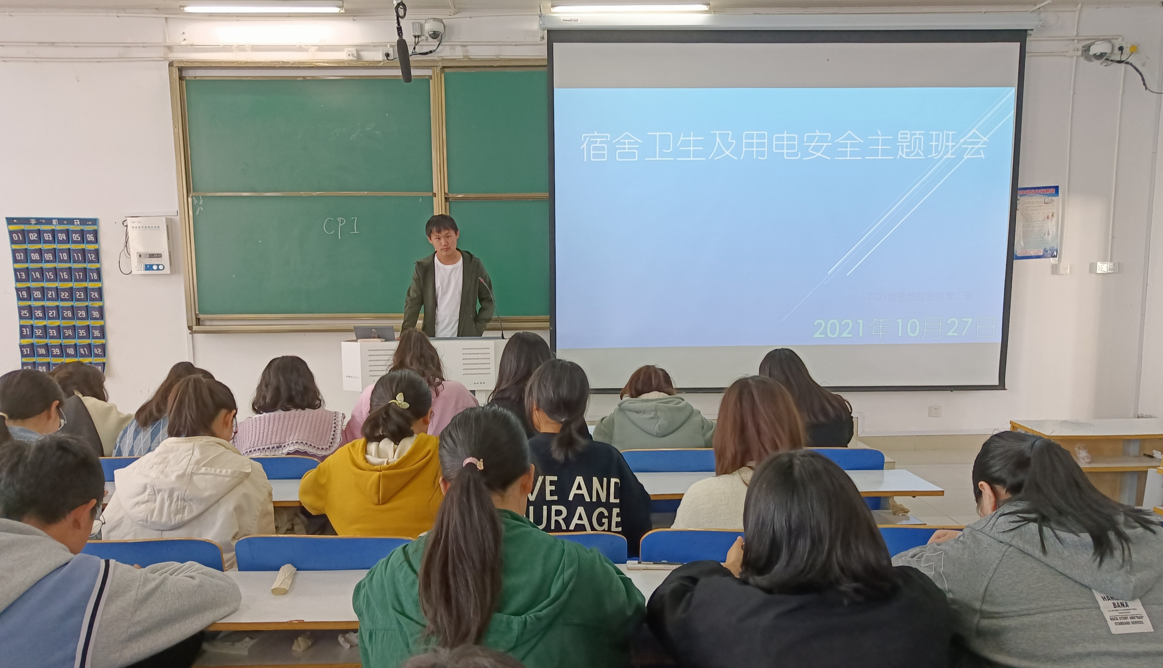 会议伊始,团支书王婧欣提出,寝室的干净与否体现学生素质的高低,保持寝室卫生干净整洁是对我们每个人的基本要求,同时,团支书王婧欣向我们展示了一些优秀寝室照片,希望我们认真学习,并作出总结。随后,副班长任振豪分别从出门断电、出门锁门、在寝室不使用违规电器等方面展开论述。他提醒,同学们应该增加消防意识,学习自救常识,进行规范化、安全化的自主管理。班会引起了同学们的高度重视,班会后,同学们进行了热烈讨论,同时积极参与寝室安全的保障工作。