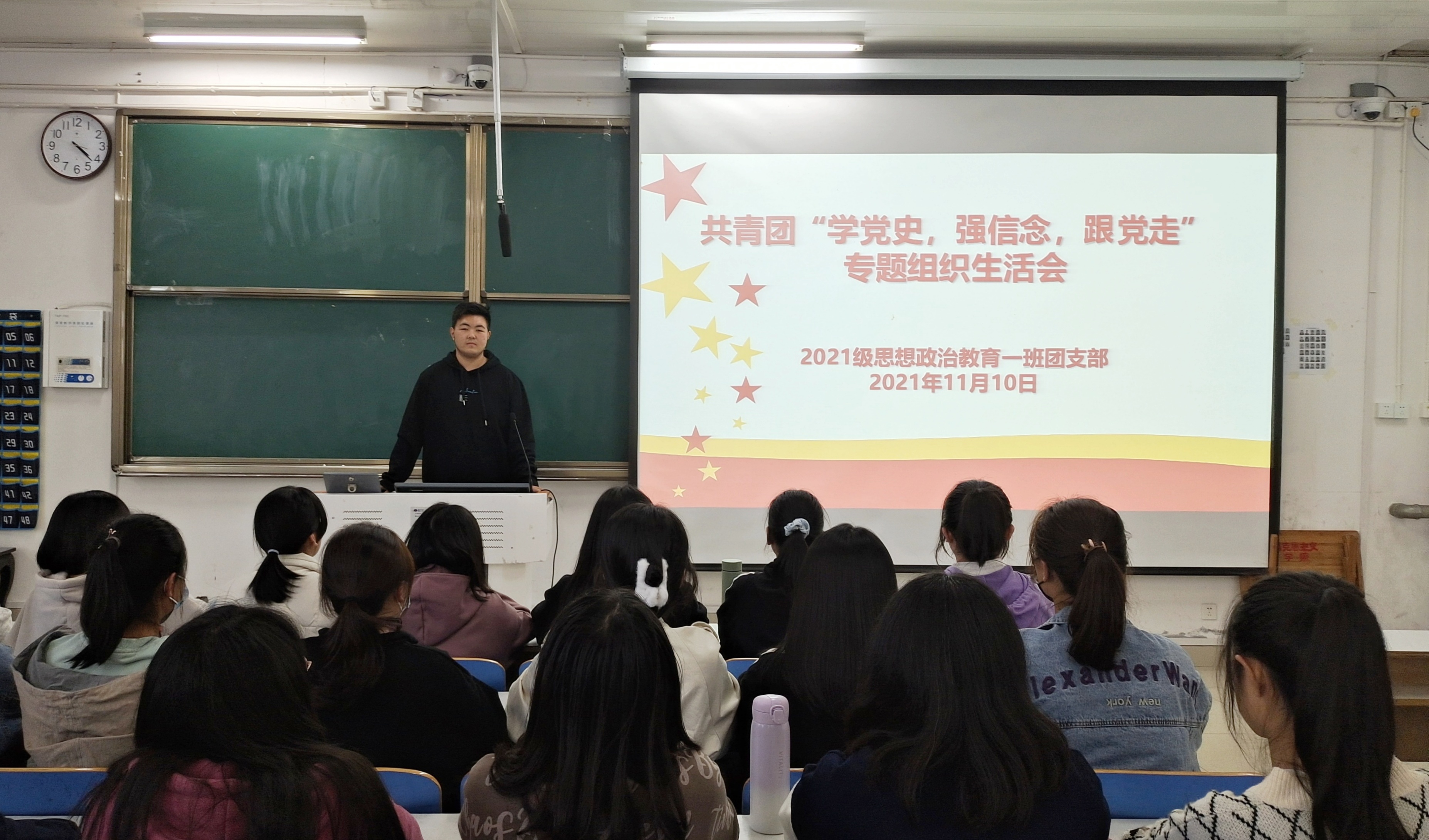 响应共青团“学党史、强信念、跟党走”的号召,11月10日下午,小说狂人 2021级思想政治教育一班在社科楼516教室召开组织生活会。2021级思想政治教育一班全体成员参加了本次大会。会议由团支书戴翰林主持。