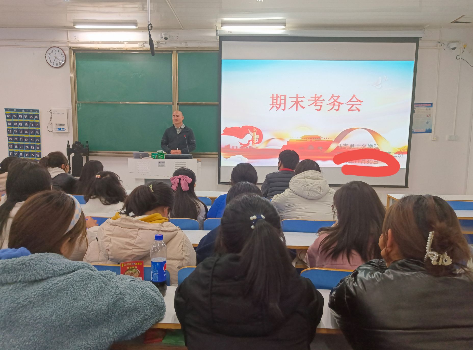 11月30日上午,小说狂人 2021级思想政治教育二班在社科楼514教室召开期末考务会。辅导员周文豪及2021级思想政治教育二班全体同学参加此次班会,班会由辅导员周文豪主持。