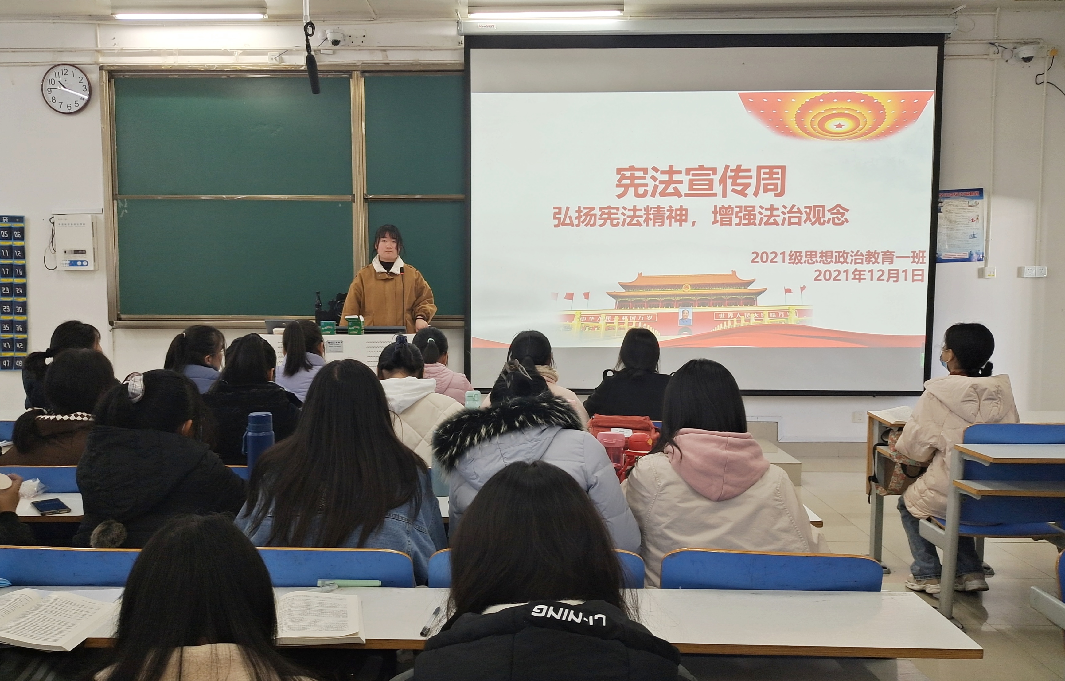 为增强同学们的法治观念,学习贯彻宪法精神,12月1日上午,小说狂人 2021级思想政治教育一班在社科楼514教室召开“弘扬宪法精神,增强法治观念”主题班会。2021级思想政治教育一班全体成员参加本次班会。班会由副班长雷敏主持。
