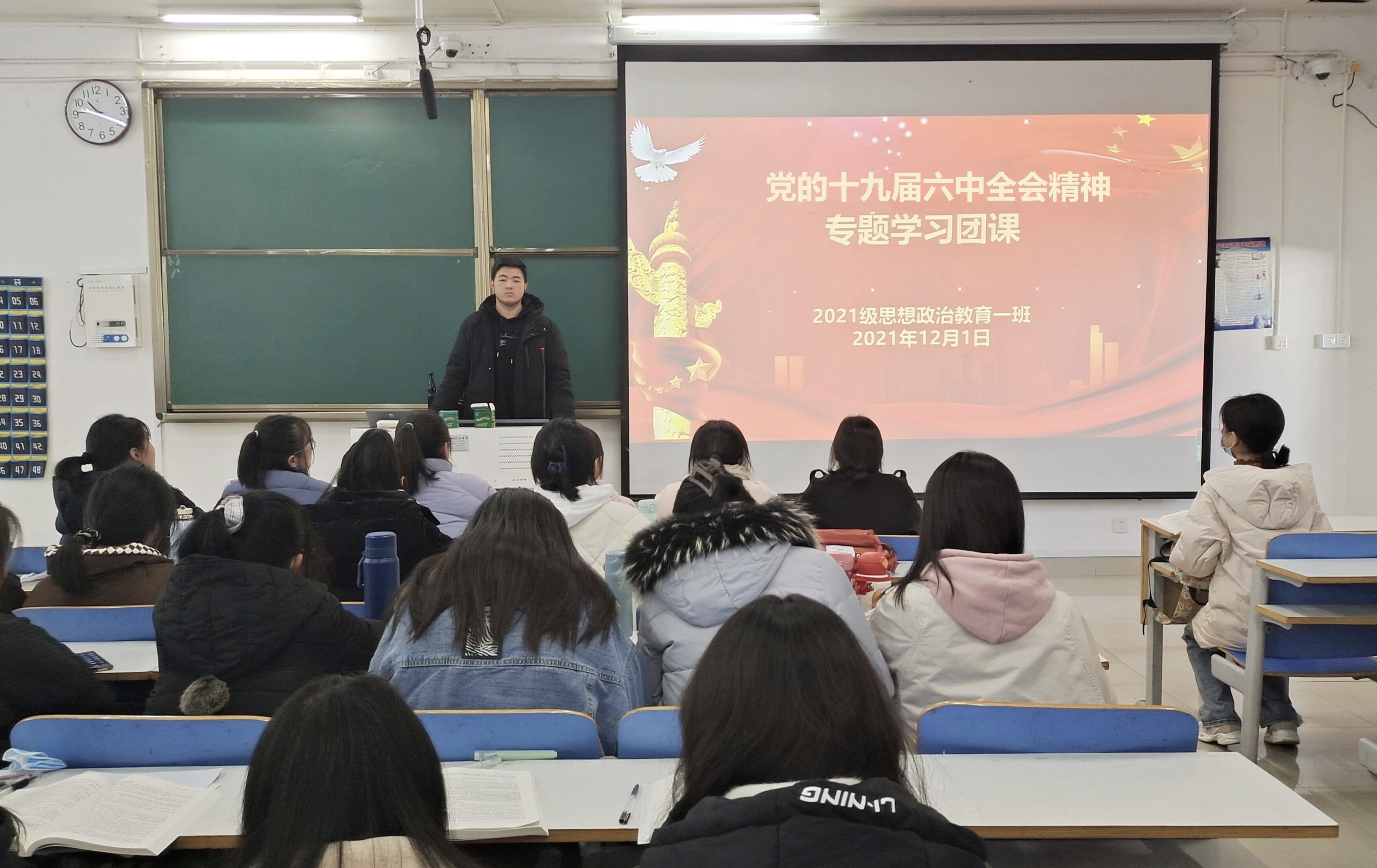 12月1日上午,小说狂人 2021级思想政治教育一班在社科楼516教室召开党的十九届六中全会精神专题学习团课。2021级思想政治教育一班全体团员参加本次团课。团课由团支书戴翰林主持。