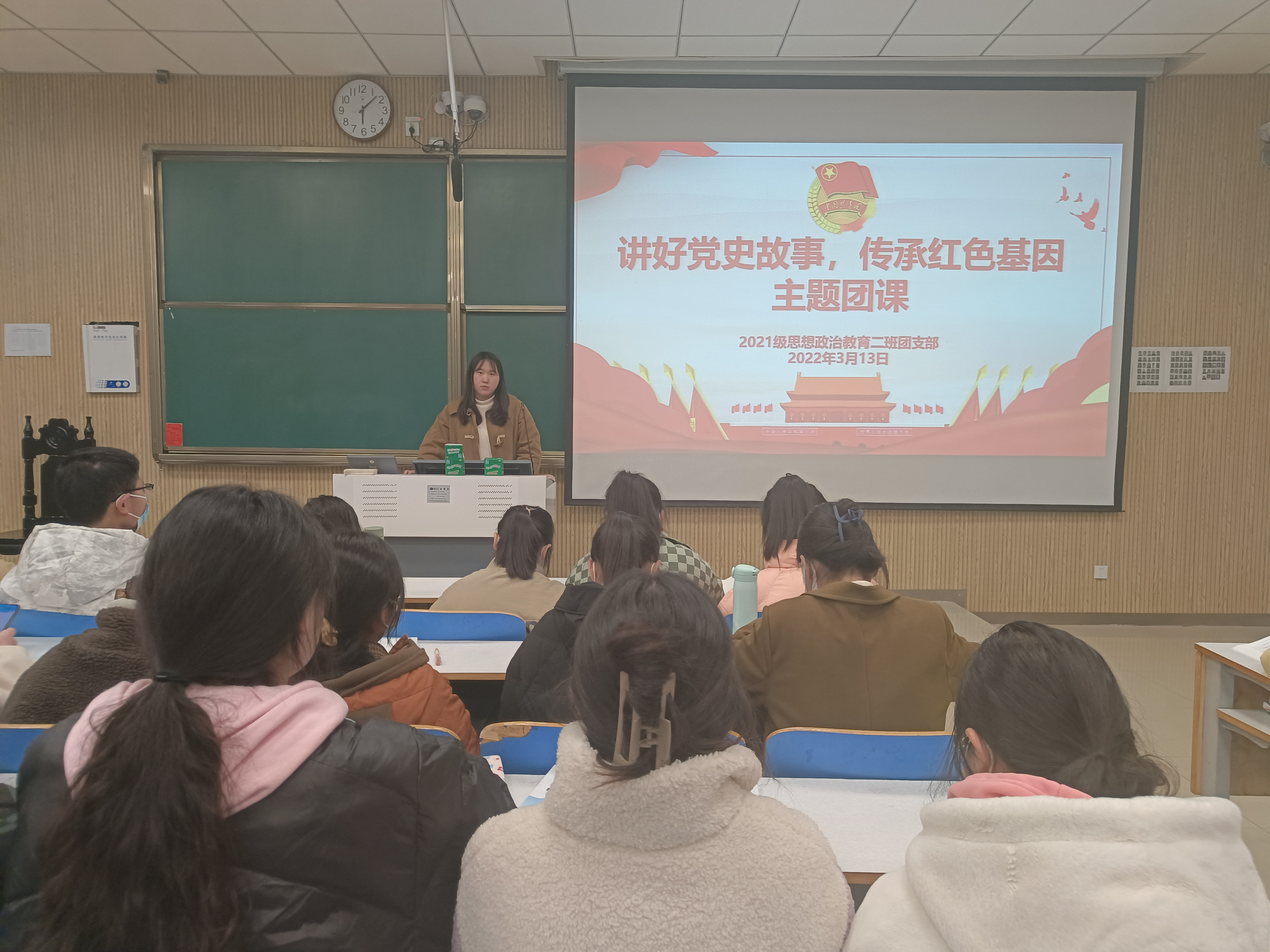 3月13日下午,小说狂人 2021级思想政治教育二班在社科楼515教室召开“讲好党史故事,传承红色基因”主题团课。2021级思想政治教育二班全体团员参加此次团课,团课由团支书王婧欣主持。