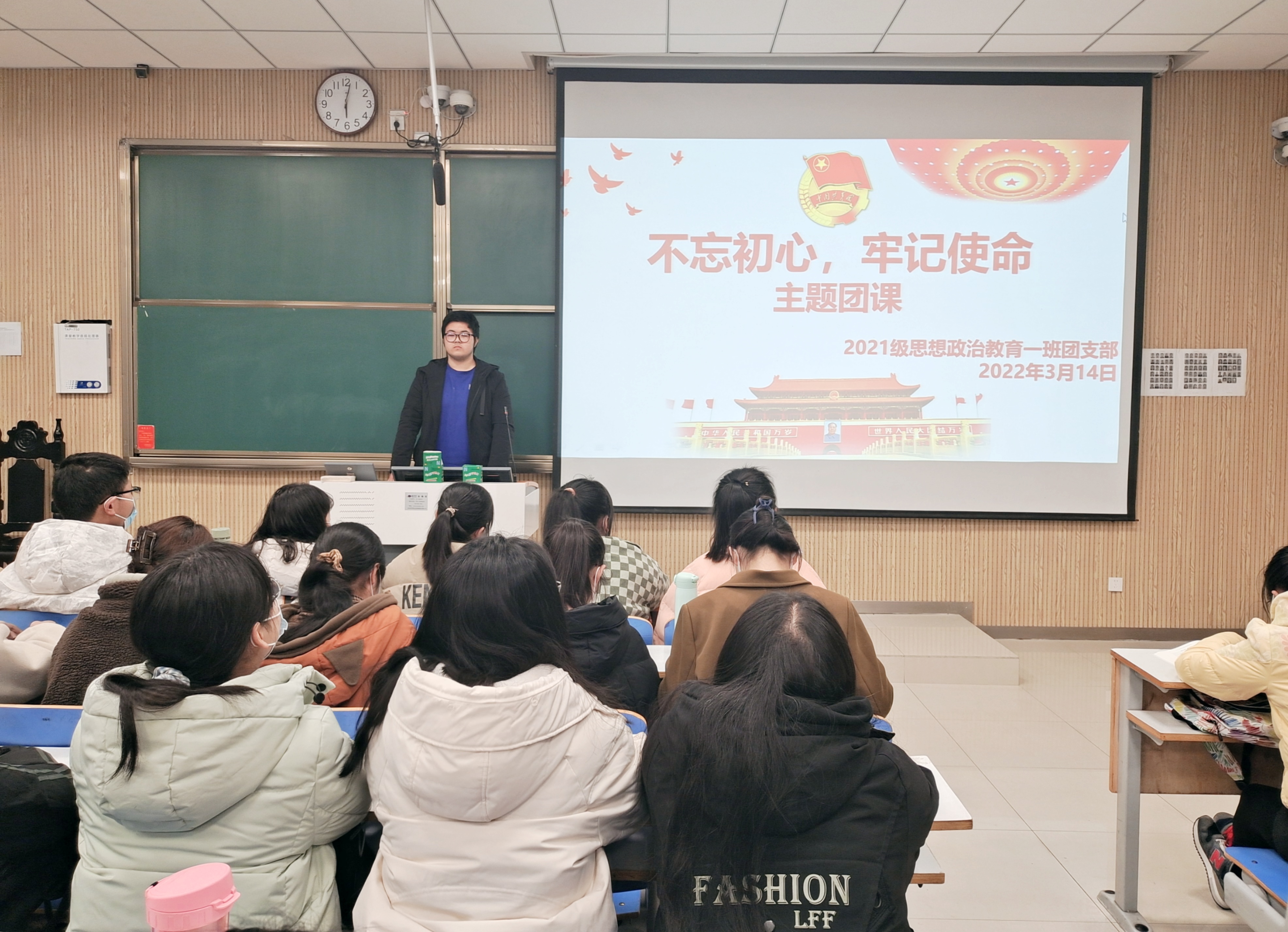 3月14日下午,小说狂人 2021级思想政治教育一班在社科楼515开展“不忘初心,牢记使命”主题团课。2021级思想政治教育一班全体团员共同参加了本次会议。会议由团支书戴翰林主持。