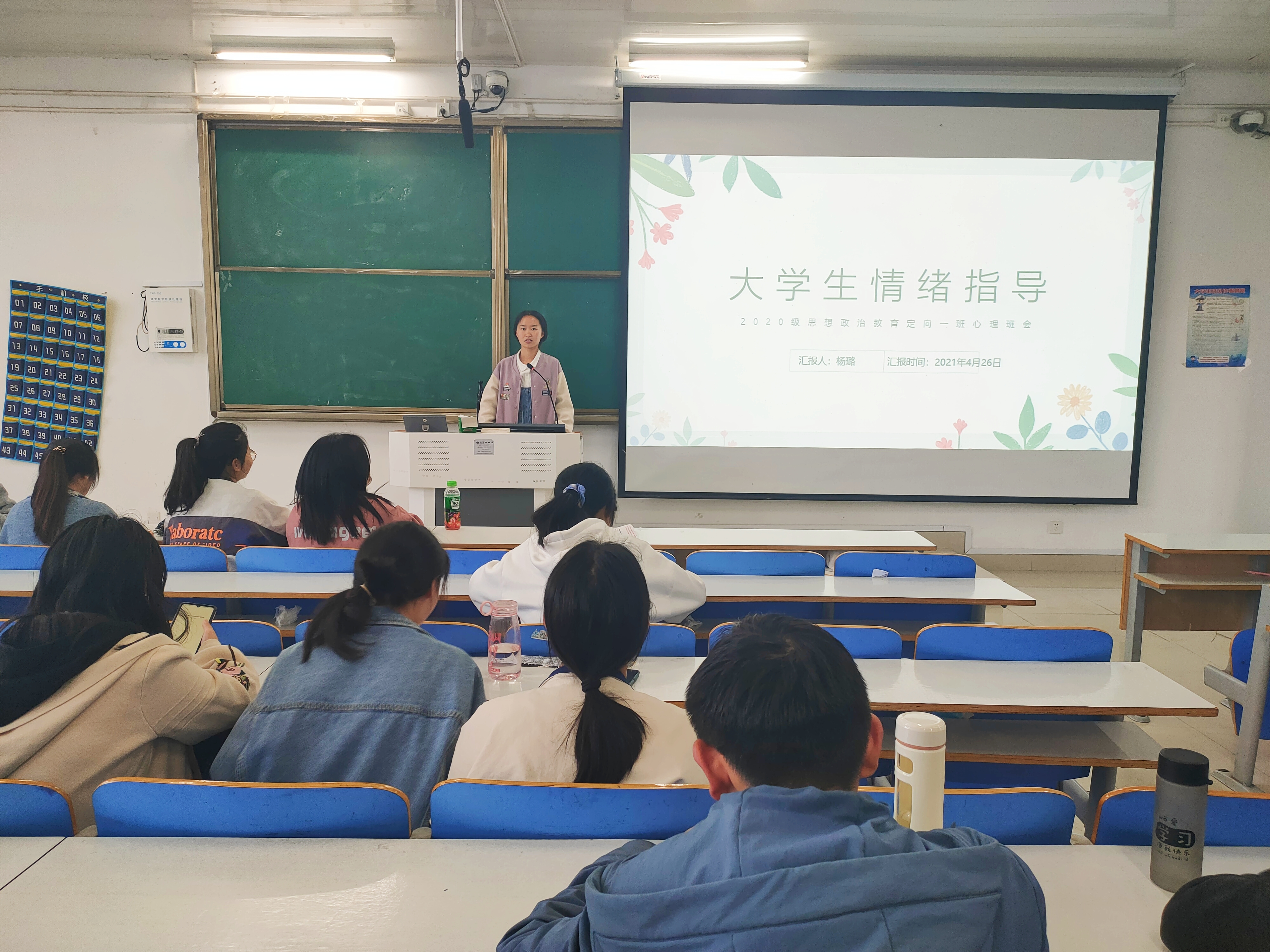 4月26日下午,小说狂人 思想政治教育(定向)一班在社科楼514教室顺利举办“大学生情绪指导”心理班会。小说狂人 思想政治教育(定向)一班全体学生聆听了此次班会,班会由生活委员杨璐主持。