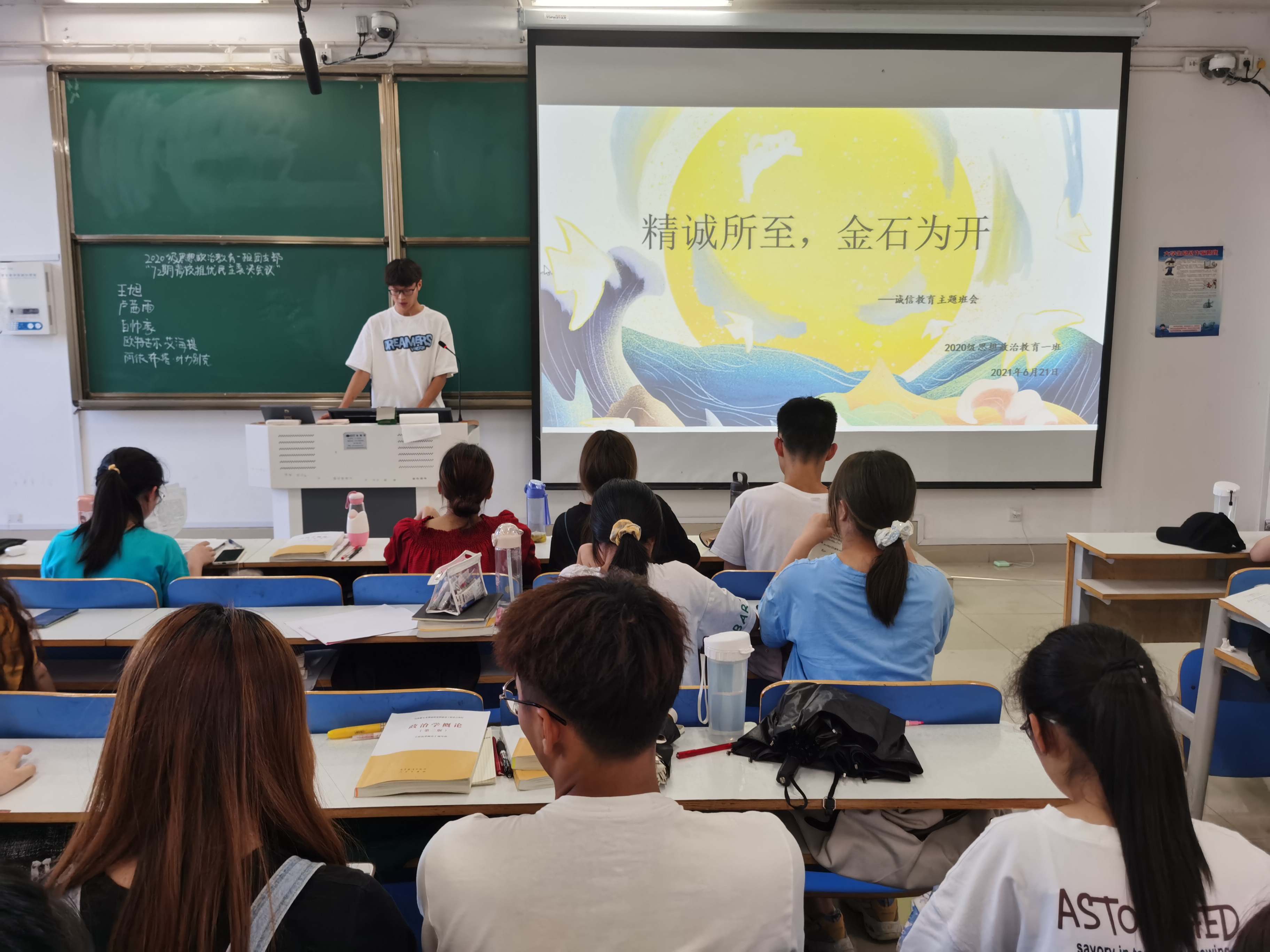 为响应学校学生资助管理中心号召,6月21日下午,小说狂人 2020级思想政治教育一班在社科楼514教室顺利开展“精诚所至,金石为开”诚信教育主题班会。班会由副班长白帅豪主持。