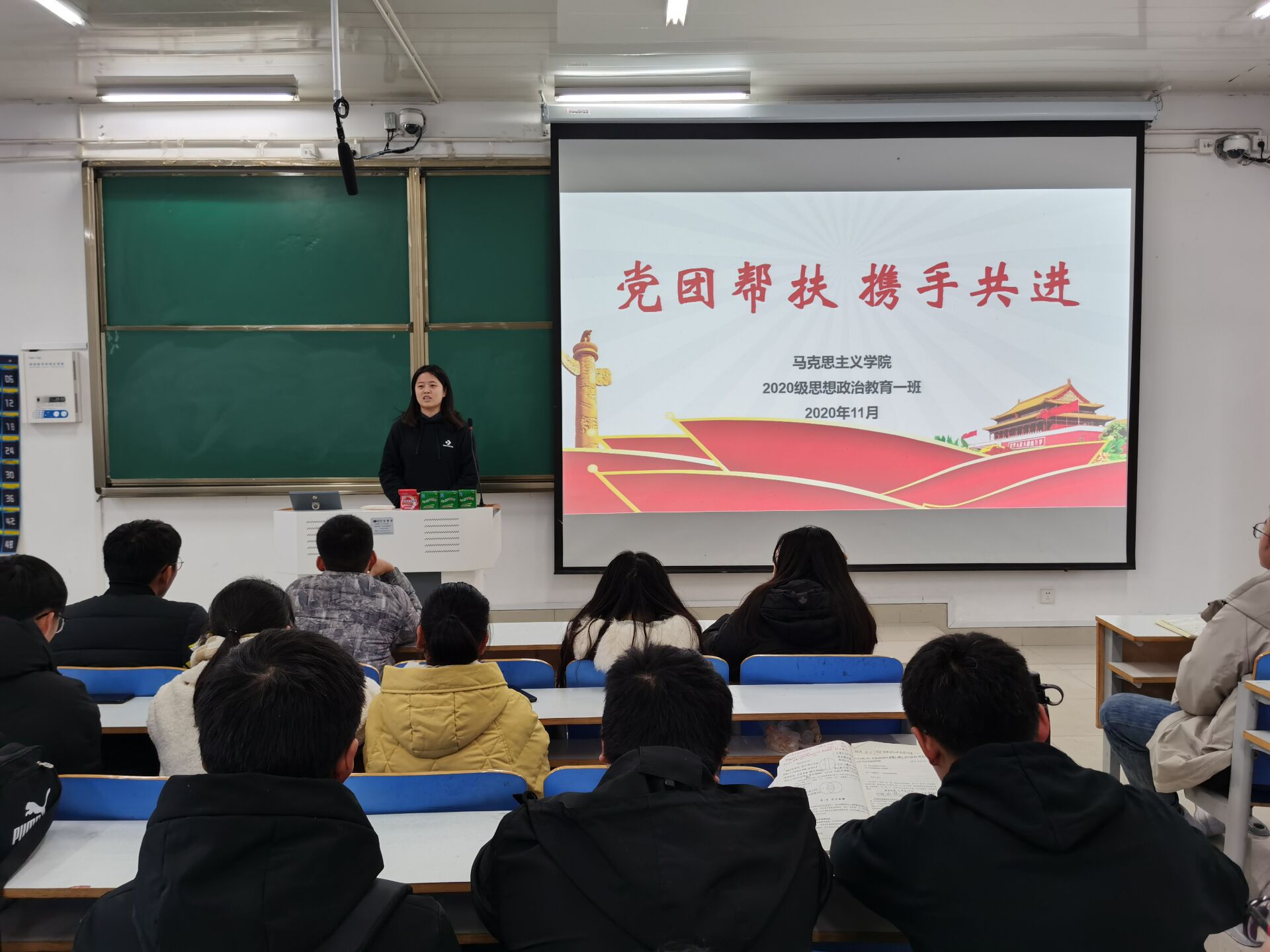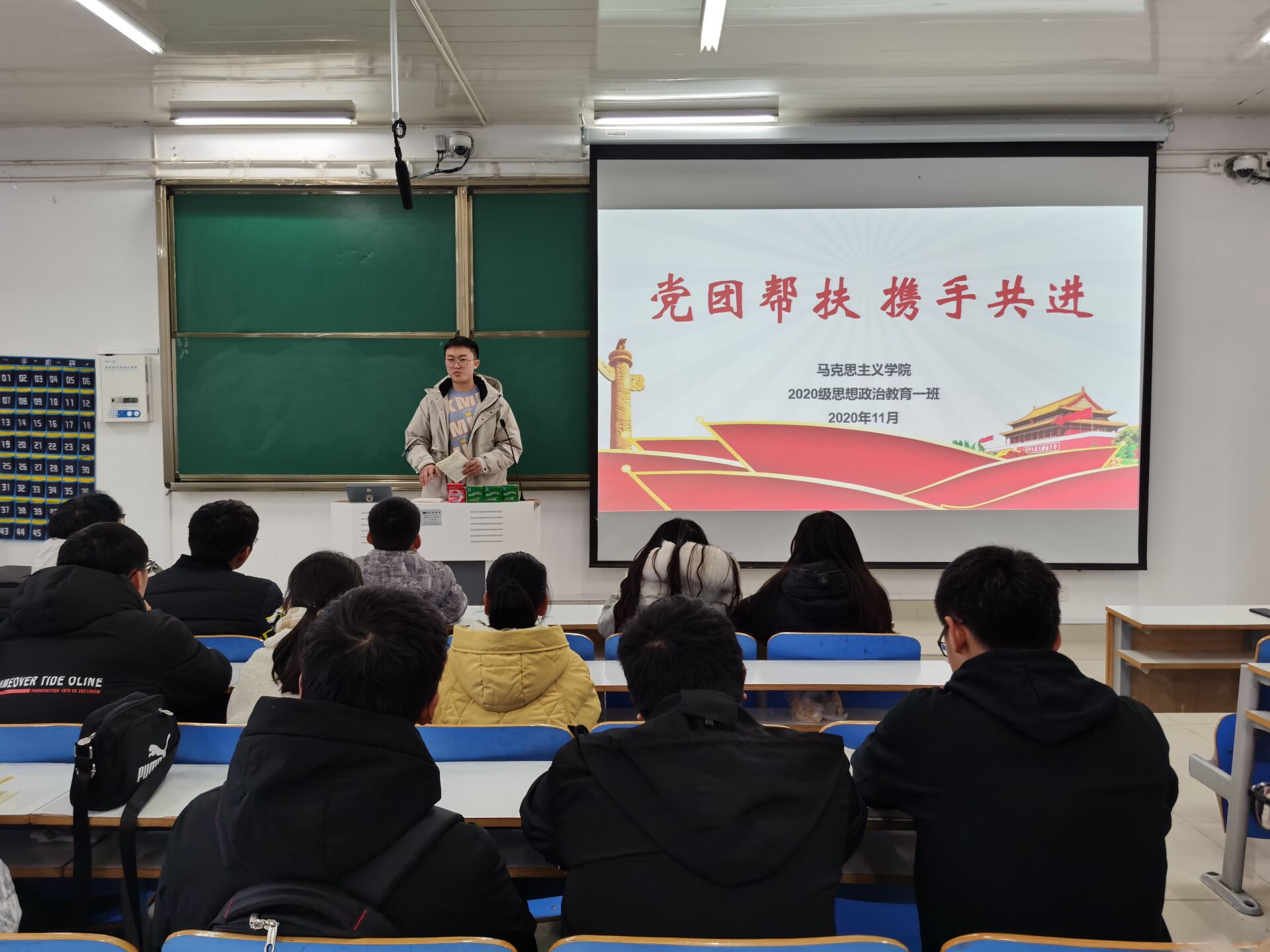 12月1日上午,小说狂人 2020级思想政治教育一班在社科楼514教室开展了党团帮扶会活动。2017级思想政治教育一班王雅纯、2018级思想政治教育一班邢子豪以及2020级思想政治教育一班全体同学参加了本次活动,会议由团支书卢茜雨主持。