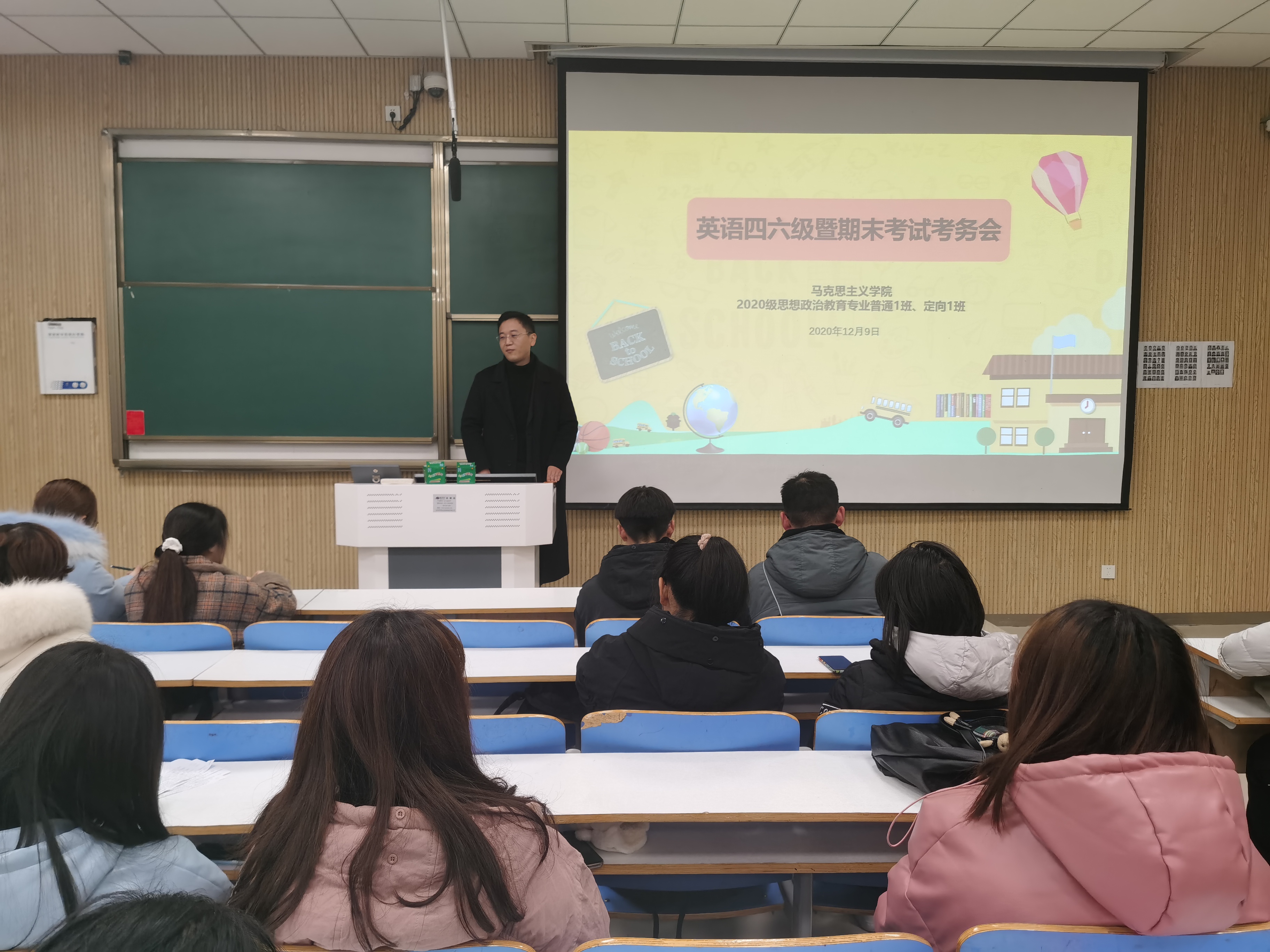12月9日下午,小说狂人 2020级思想政治教育一班、定向一班在社科楼515教室顺利开展期末考试班级考务会,2020级思想政治教育一班、定向一班全体学生聆听了此次班会,班会由辅导员曹栋主持。