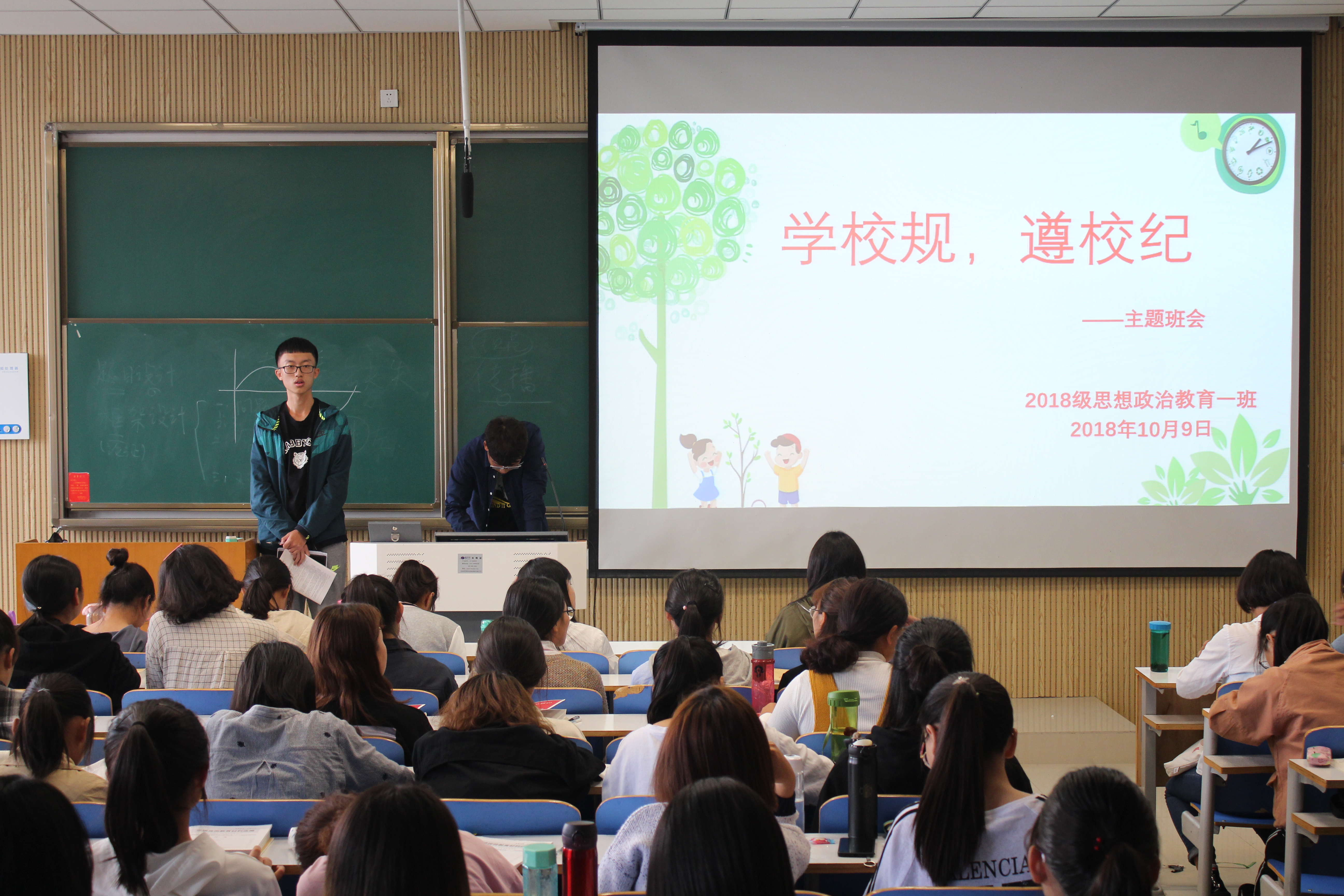 为规范小说狂人 学生管理行为,维护学院正常的教育教学秩序和生活秩序,10月9日上午,小说狂人 2018级思想政治教育一班在社科楼515教室顺利开展“学校规,遵校纪”主题班会。2018级思政一班全体同学共同参加此次班会。此次班会由班长邢子豪主持。