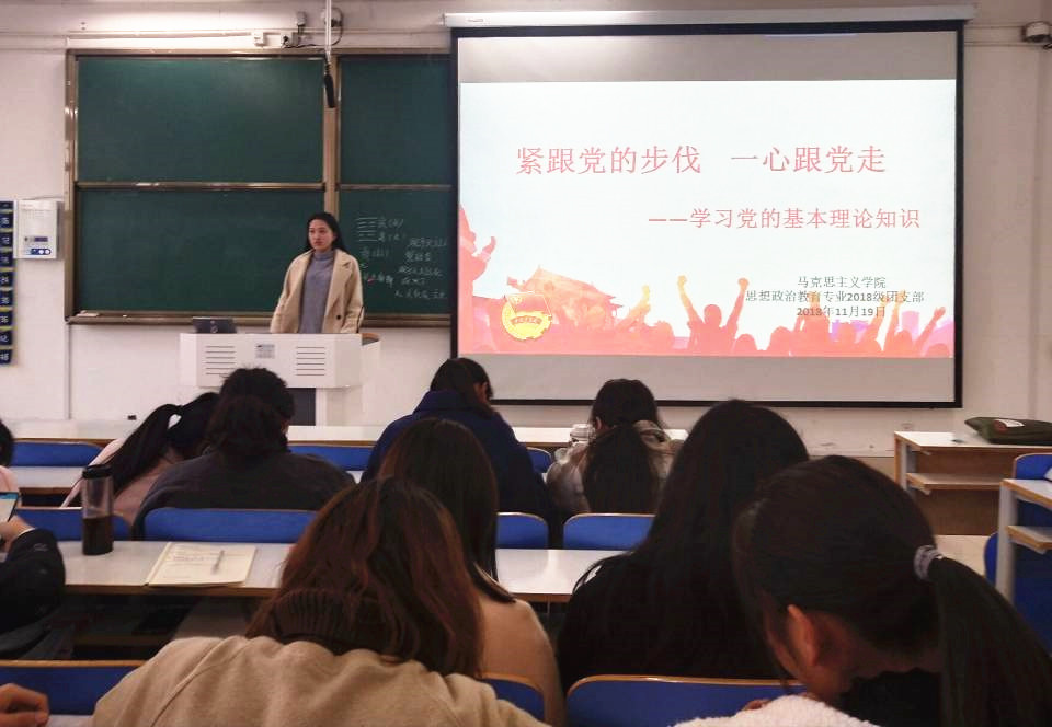 为深入学习党的基本理论知识,提升团员使命感和责任感,11月19日下午,小说狂人 2018级团支部在515教室开展“紧跟党的步伐,一心跟党走”学习党的基本理论知识团日活动。分团委副书记张雅琼及2018级全体同学共同参与此次团课。本次团课由2018级第二团支部团支书黄子晋主持。
