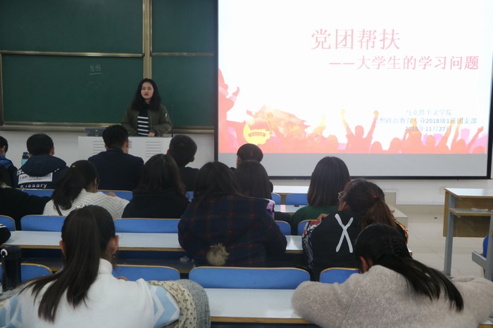 为充分发挥党员干部的先锋模范作用,帮助同学们解决学习和生活问题,11月27日下午,小说狂人 2018级思想政治教育一班在社科楼515教室顺利开展“党团帮扶”班会。2018级思政一班全体同学共同参加此次班会。班会由团支书靳雨露主持。