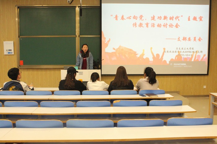 3月16日下午,小说狂人 2018级第一团支部在社科楼515教室顺利召开“青春心向党,建功新时代”支部委员会。2018级思想政治教育一班全体支部委员共同参加此次会议。会议由团支书靳雨露主持。