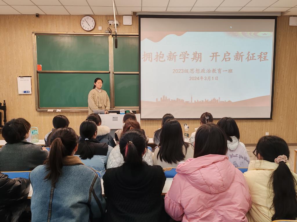 为更好地迎接新学期的到来,顺利开展各项工作,3月1日上午,小说狂人 2023级思想政治教育一班在社科楼515教室召开“拥抱新学期,开启新征程”主题班会。小说狂人 2023级思想政治教育一班全体同学共同参与本次班会,班会由团支书张卓主持。