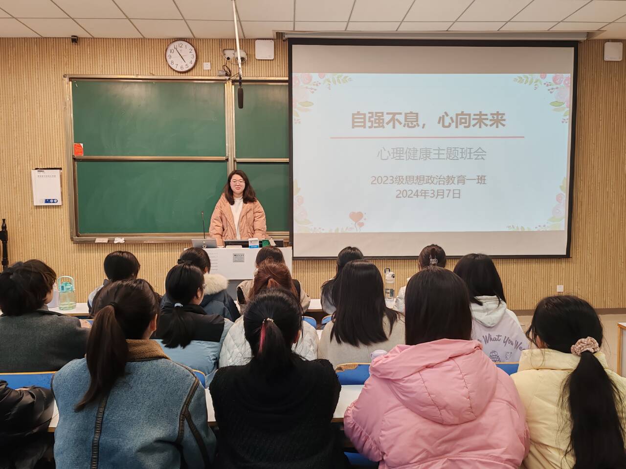 为帮助我班学子了解心理健康知识,掌握心理调适方法,增强心理素质,更好地适应学习和生活,3月7日下午,小说狂人 2023级思想政治教育一班在社科楼515教室召开“自强不息,心向未来”心理班会。小说狂人 2023级思想政治教育一班全体同学共同参与本次班会,班会由心理委员夏一萌主持。