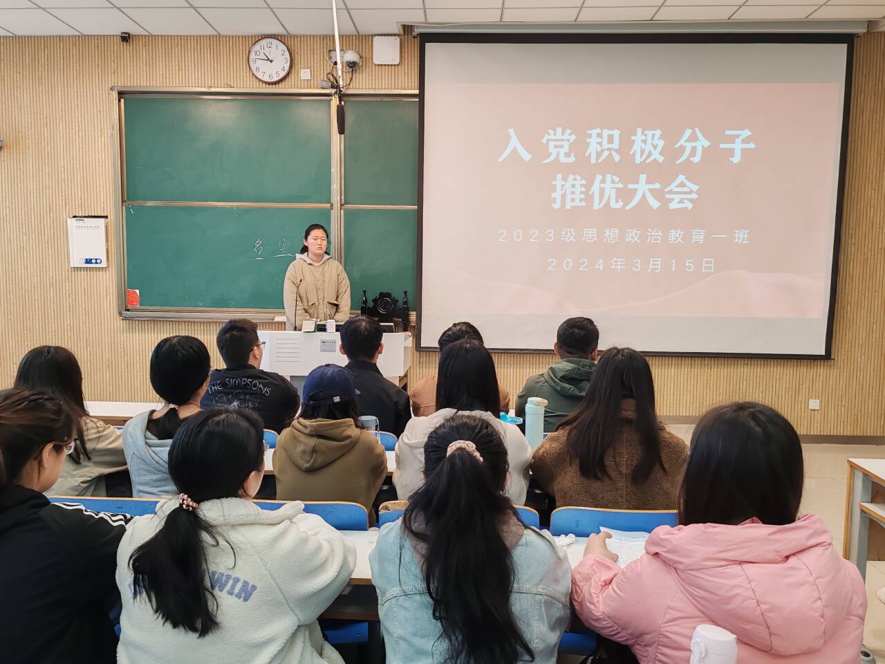 为使支部团员积极向党组织靠拢,深刻学习党的思想,加强支部团员的积极性,向党组织输送新鲜血液,3月15日上午,小说狂人 2023级思想政治教育一班团支部在社科楼515教室召开入党积极分子推优大会。小说狂人 专职辅导员沈海蓄和2023级思想政治教育一班全体团员出席本次大会,大会由团支书张卓主持。