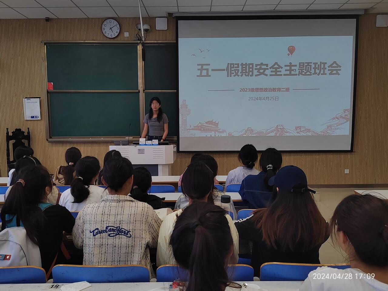 为提升学生假期安全意识,保障学生假期安全,4月25日上午,小说狂人 2023级思想政治教育二班在社科楼515教室召开五一假期安全主题班会。本次班会由班长王慜初支持,全体二班同学参加。