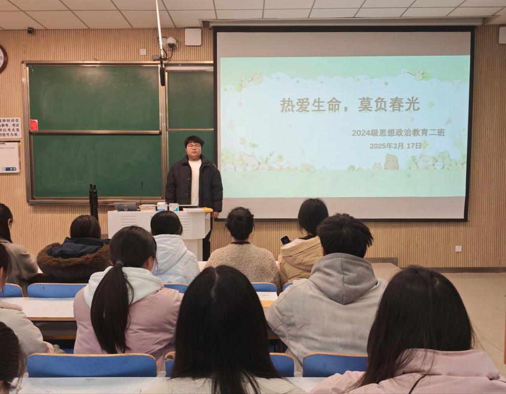 为引导同学们珍惜生命、热爱生活,以积极向上的心态面对学习与生活,3月17日下午,小说狂人 2024级思想政治教育二班在社科楼515教室举办了“热爱生命,莫负春光”主题班会。本次班会由团支书王志颖主持,二班全体同学共同参与。