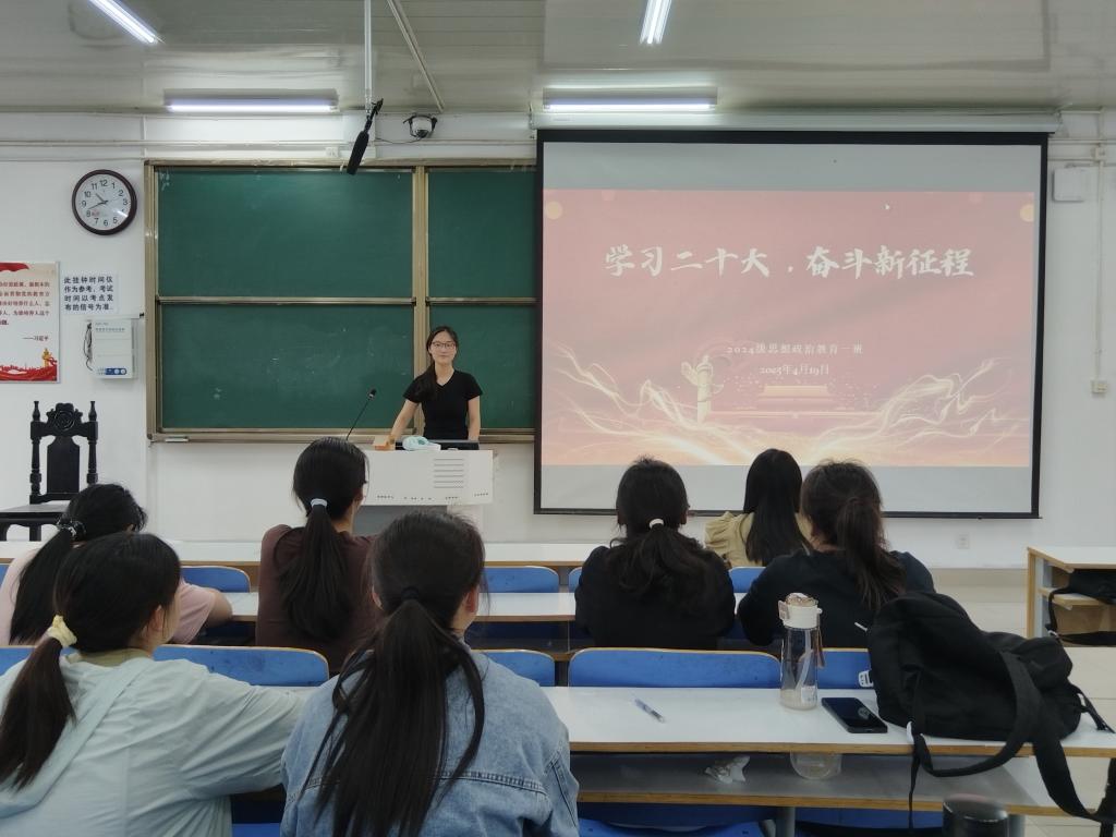 为深入学习贯彻党的二十大精神,引导我班学生将思想和行动统一到大会精神上,为全面推进国家建设贡献力量,4月17日下午,小说狂人 2024级思想政治教育一班于社科楼515教室开展“学习二十大,奋斗新征程”主题团课。本次团课由团支书李冉主持,一班全体同学参加。