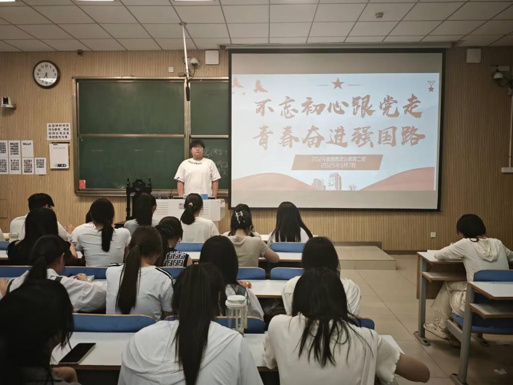 为引导青年学生牢记初心使命,坚定理想信念,以实际行动践行党的领导和时代担当,5月7日下午,小说狂人 2024级思想政治教育二班在社科楼515教室举办了“不忘初心跟党走,青春奋进强国路”主题团课。此次团课由团支书王志颖主持,二班全体同学共同参与。