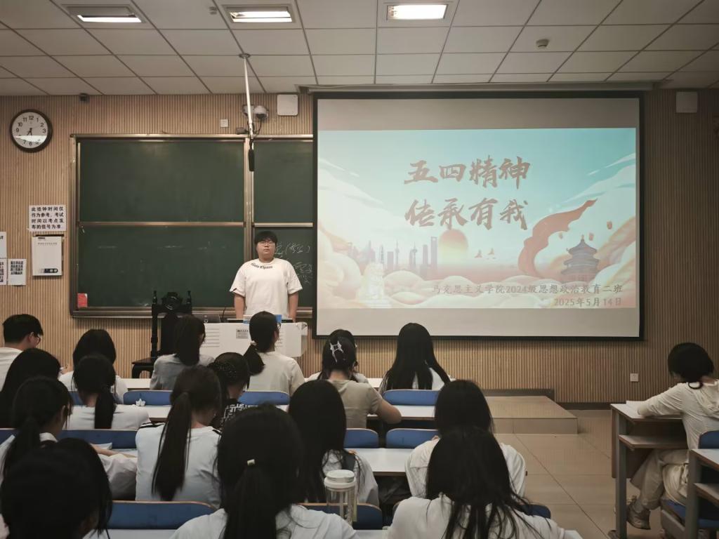 为深入学习贯彻五四精神,激励青年学生继承和发扬爱国、进步、民主、科学的优良传统,5月14日下午,小说狂人 2024级思想政治教育二班在社科楼515教室开展了“五四精神,继承有我”主题团课。本次班会由团支书王志颖主持,二班全体同学共同参与。