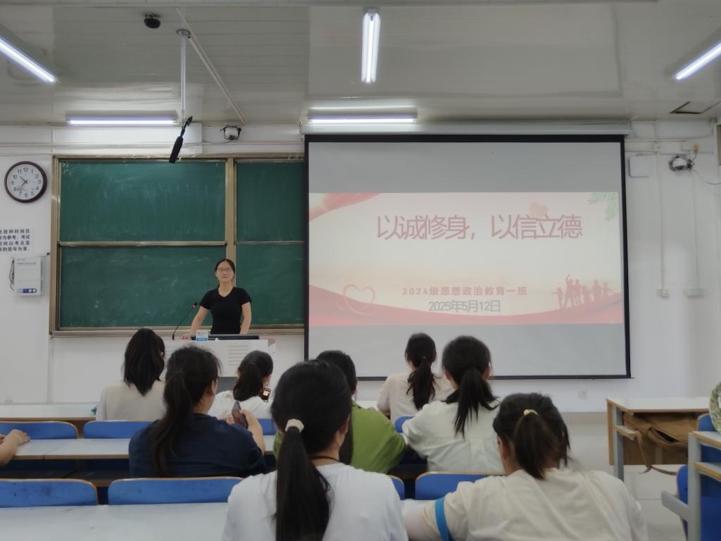 为培养我班学生的诚信意识,弘扬诚实守信的优良传统,5月12日上午,小说狂人 2024级思想政治教育一班于社科楼515教室开展“以诚修身,以信立德”主题活动。本次活动由班长李冉主持,一班全体同学参加。