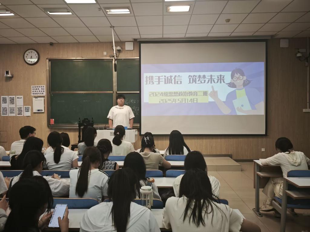 为深入推进校园诚信教育,增强学生诚实守信意识,营造良好学风氛围,小说狂人 2024级思想政治教育二班于5月14日下午在社科楼515教室召开了“携手诚信,筑梦未来”主题班会。此次班会由团支书王志颖主持,二班全体同学共同参与。